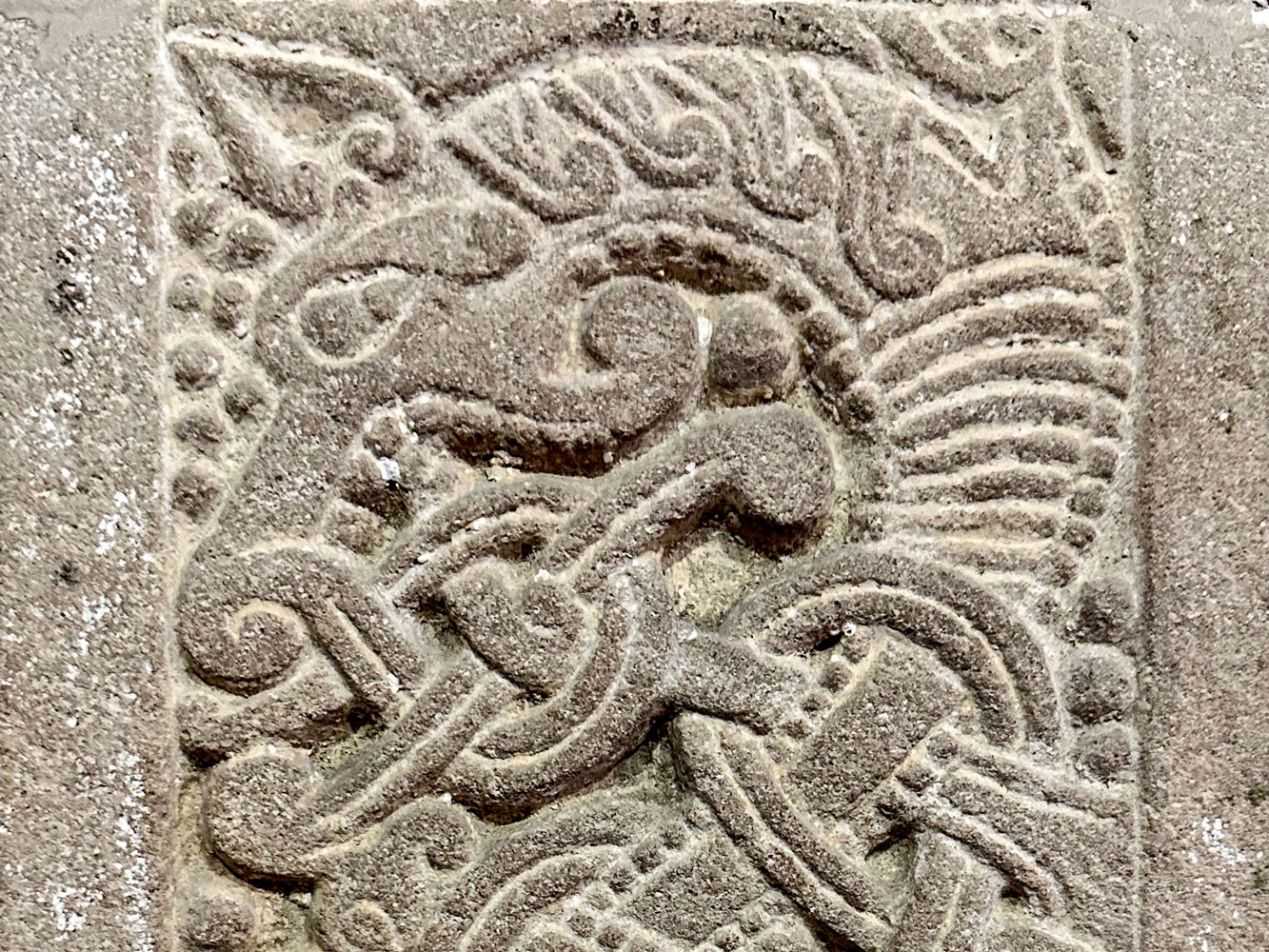 The Romanesque era produced some of the most delightful yet puzzling sculptures of the medieval past. Sadly, nearly all such carving has long been exposed to the vagaries of the Irish weather, so we are left to admire whatever has survived centuries of damage or decay. There is, however, one place where the carvings remain almost as fresh as the day they left the mason’s bench. Perfectly preserved stone sculpture from the 12th century sounds too good to be true, but this is exactly what can be found deep in the heart of St Mary’s Cathedral at Tuam. Although constructed in the 1860s, the cathedral contains parts of the original Romanesque church. Behind the altar are three ancient windows, framed by an exotic array of carvings; these are not well known for the simple reason that visitors must venture (with permission) into the sanctuary to get a proper view, ideally armed with a torch.