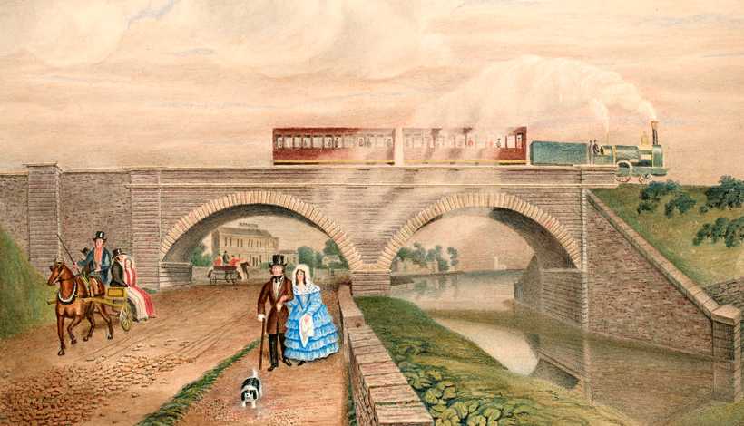 Edward McFarland Dublin and Drogheda Railway Viaduct over Clontarf Road 1853 watercolour 27.2 x 46.4cm
