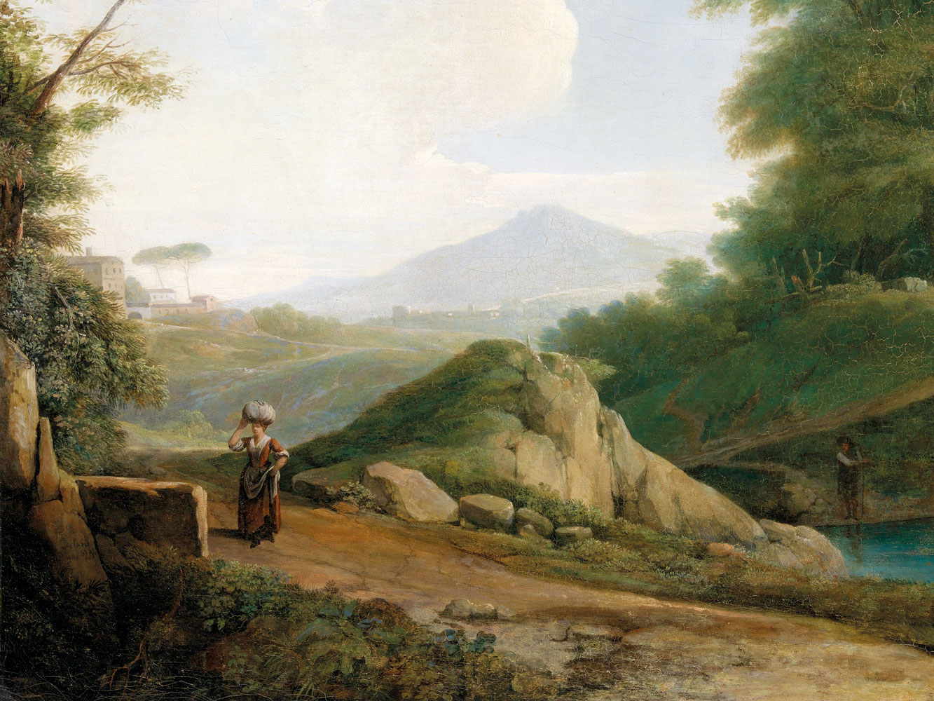 T he 18th-century Irish painter Solomon Delane (c.1727-1812), whose Italianate landscapes appear infrequently at auction, has never been the subject of a major exhibition. A talented artist, Delane’s canvases are very much of their time; Classical works, with a hint of Romanticism, inspired by Claude Lorrain and Nicholas Poussin. Cool and delicate, his cliffs and woodlands are enlivened with fountains, temples and travellers; his mountains are dark outlines silhouetted against silvery skies.