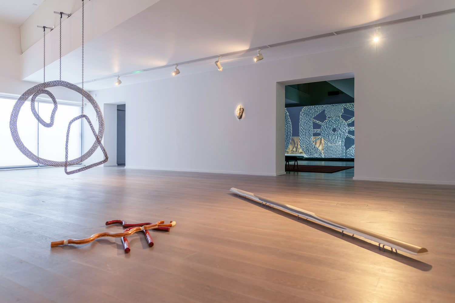 ‘Gvozdene Kapije’ (‘The Iron Gates’), by the artist Barbara Knežević, is an exhibition of new large-scale sculptures and a single-channel film of forty-six minutes’ duration, described by the artist as ‘a sculptural film’. Knežević’s first, it is an impressive, complex and visually stunning piece. The exhibition is an exploration on multiple levels of the rich archaeological, cultural and industrial history of Gvozdene Kapije, a deep, scenic gorge on the River Danube on the border of Serbia and Romania. The area is now the location of the colossal Iron Gate I Hydroelectric Power Station, built between 1964 and 1972 as a collaborative project between the governments of the former Yugoslavia and Romania. Iron Gate II was completed in 1984.