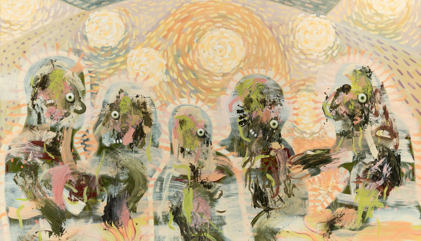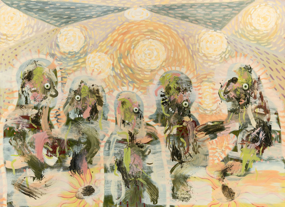 Circularity, transformation and shapeshifting lie at the heart of Kevin Mooney’s painting practice. He mines Irish cultures in search of a new art history that might address the gaps in our shared material culture, impoverished as it was through colonial hegemony. He takes well-known and sometimes clichéd tropes of Irishness and looks at them askew. What is revealed is far less familiar and more uncanny than may initially have seemed the case.