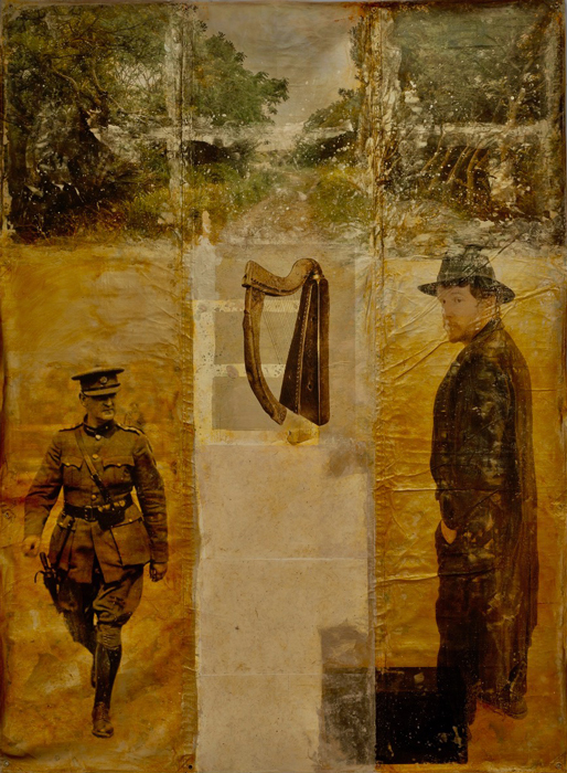 John P O’Sullivan previews Hughie O’Donoghue’s latest suite of paintings of diverse historic characters spanning 1,500 years of history The magnificent Shaw Room at the National Gallery of Ireland (NGI) has been radically transformed; Daniel Maclise’s The Marriage of Strongbow and Aoife has exciting new neighbours. The stern and stilted 18th- and 19th-century portraits have been replaced by ‘Original Sins’, a site-specific exhibition by Hughie O’Donoghue, commissioned by the NGI as part of its contribution to the Decade of Centenaries. The paintings explore Ireland’s complex relationship with Britain, as well as questions of origin and identity. The exhibition consists of six works, each of large scale, based on historical personages: Saint Deirbhile (6th century AD), the Anglo-Saxon King Wuffa (died c.578AD), Aoife MacMurrough (1145-1188), William the Conqueror (c.1028-1087), the suffragette Emily Davison (1872-1913) and Irish nationalist hero Michael Collins (1890-1922). It’s a strangely disparate group of characters, you might think at first, but when you dwell on the paintings associations begin to manifest themselves: hunger strikes, Normans, martyrs, intertwined lineages, women’s freedom, migrant incursions and more. To read this article in full, subscribe or buy this edition of the Irish Arts Review