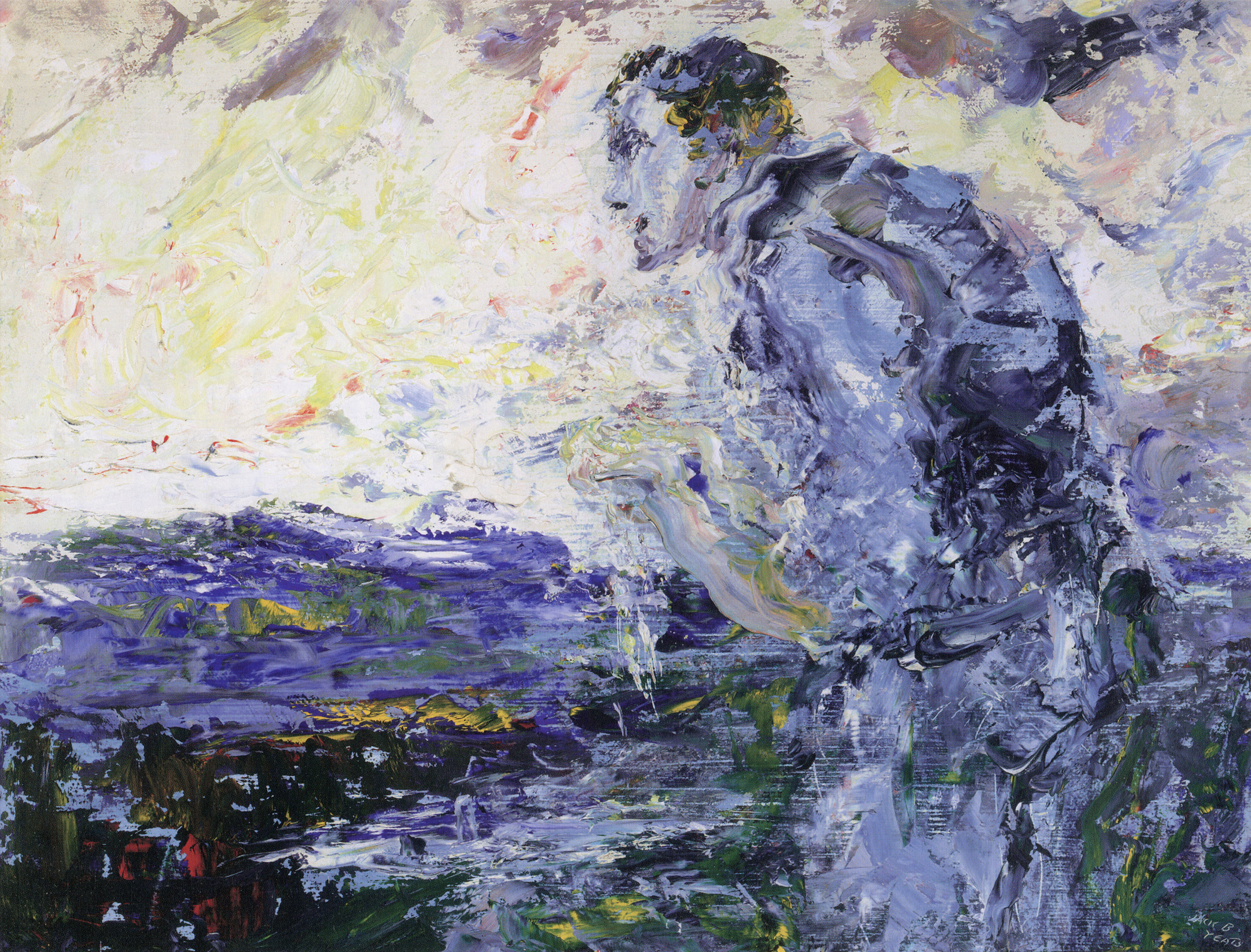 “‘Little Wanderer’, a bay racehorse in a landscape”