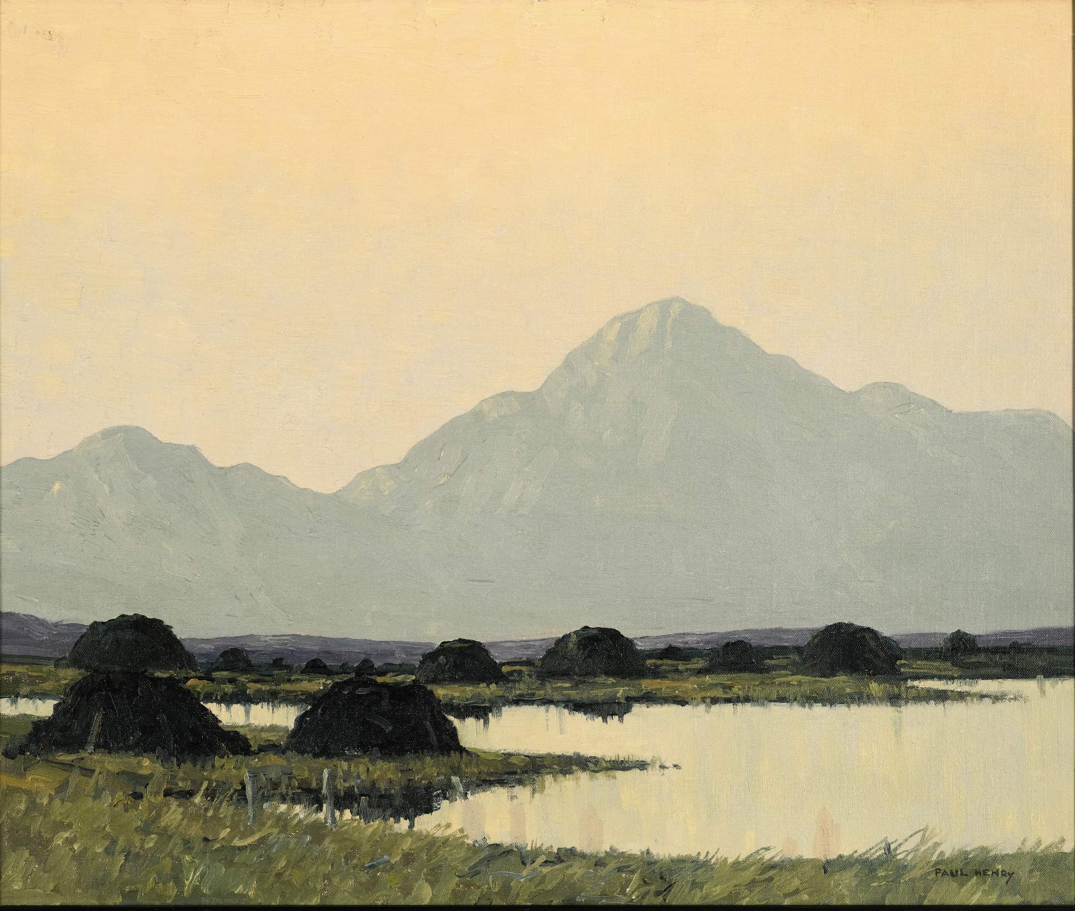 A view of Powerscourt Demesne looking towards Sugar Loaf, Deer in foreground