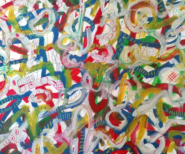 Ciara Tuite’s ‘What the Body Remembers’ at Siamsa Tíre, Tralee is an exhibition of abstract painting and accompanying text. Taking the phrase ‘the body remembers what the mind forgets’ as a point of investigation, Tuite is interested in how this intersects with the physicality of painting and the human desire for mark-making.