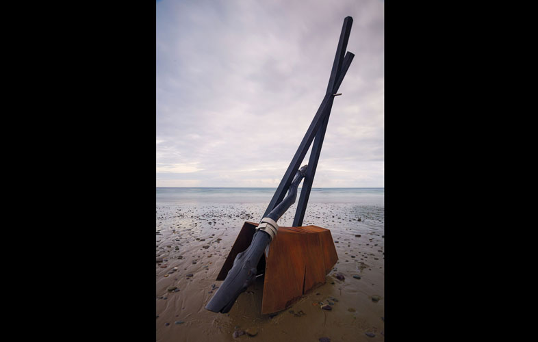 The Bourn Vincent Gallery at the University of Limerick presents ‘Material World’, a body of new sculpture by West Cork-based artist Moss Gaynor. This is a second outing for the exhibition, having been shown last year at the Irish Cultural Centre, London. A past student of the University of Limerick, Gaynor is interested in combining found or chance objects with intensively made machine-like pieces. He works primarily with ferrous and non-ferrous metals, often combining the base material with other media such as stone, wood and glass.