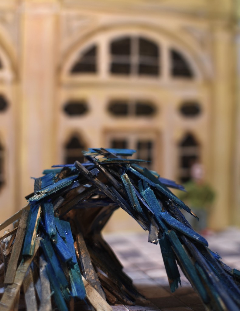 Clare Scott’s ‘Surge’ forms part of the APS Mdina Cathedral Contemporary Art Biennale in Malta. Responding to the theme ‘Mediterranean Goddesses’, Scott uses discarded shipping pallets and found wood from the surrounding area to create a rising form, inspired by the Neolithic Maltese figure of the ‘Sleeping Lady’.