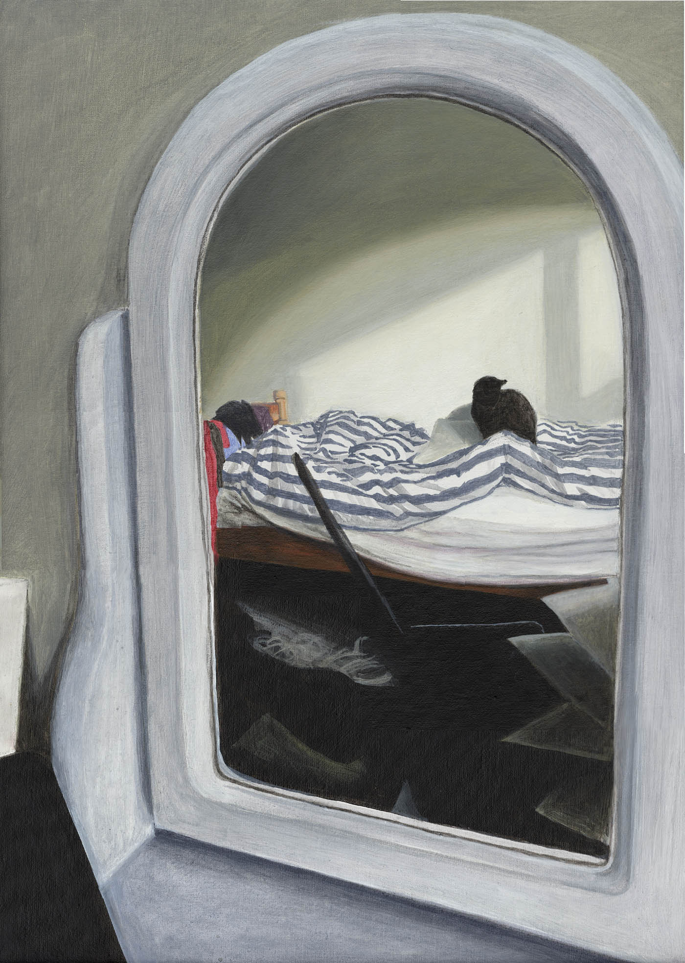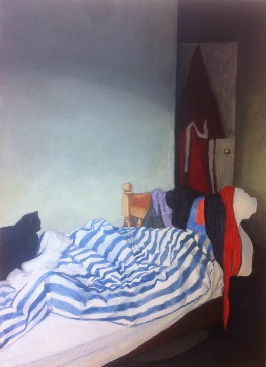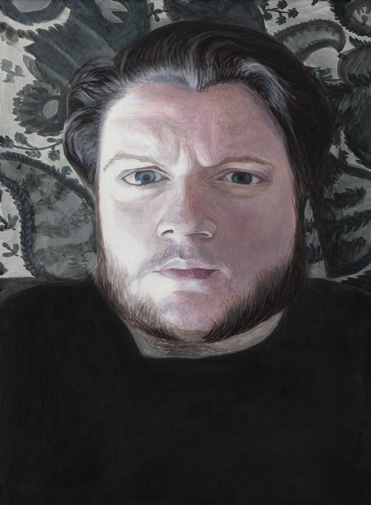 I work from photographs which have been taken quickly, meant for a glance on social media. My works reflect my interest in the disparity between the internal/external, our true selves/what we want others to see, and the fleeting nature of modern images in contrast with the slow, contemplative process of my paintings. This series is acrylic on gesso boards.
