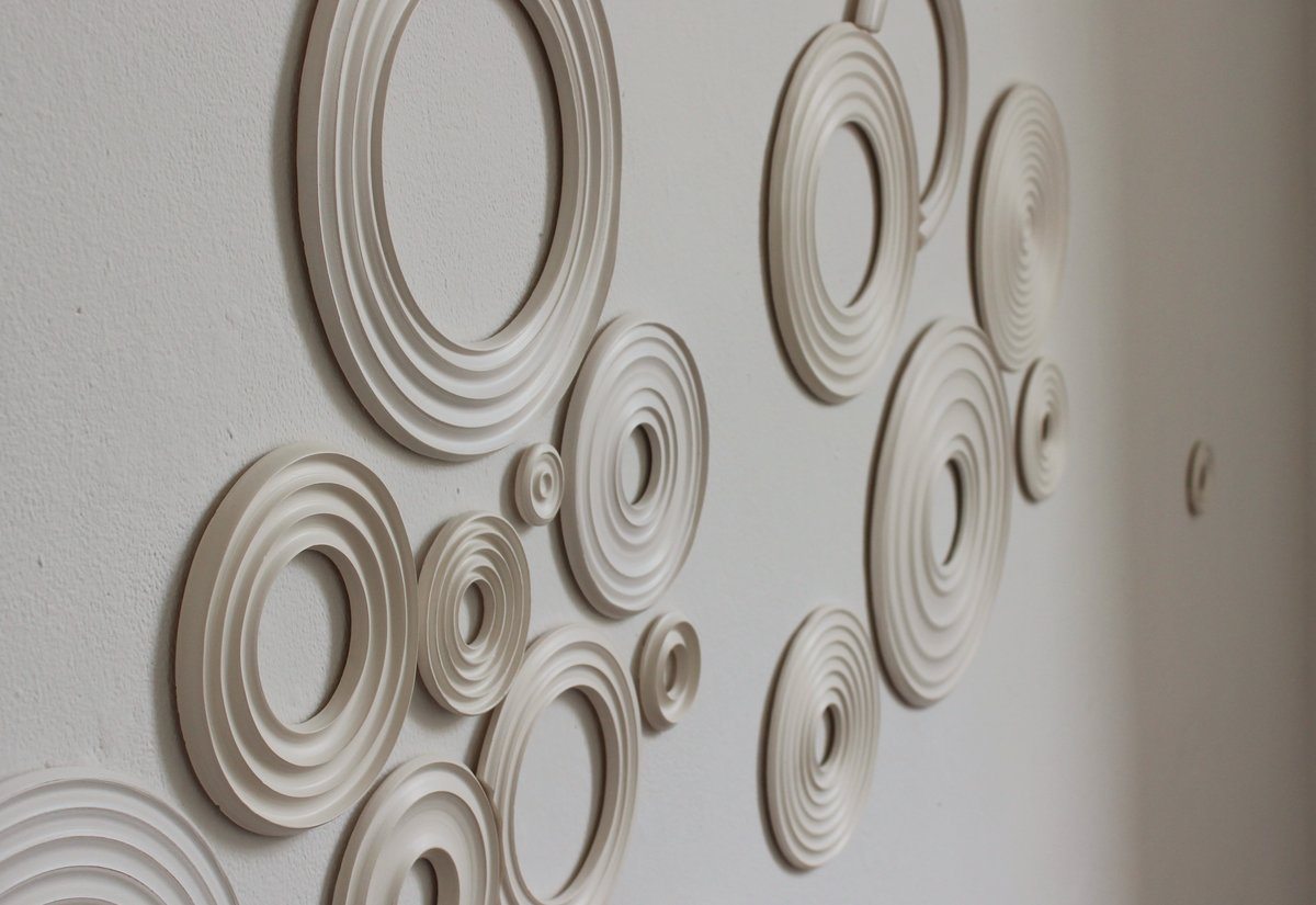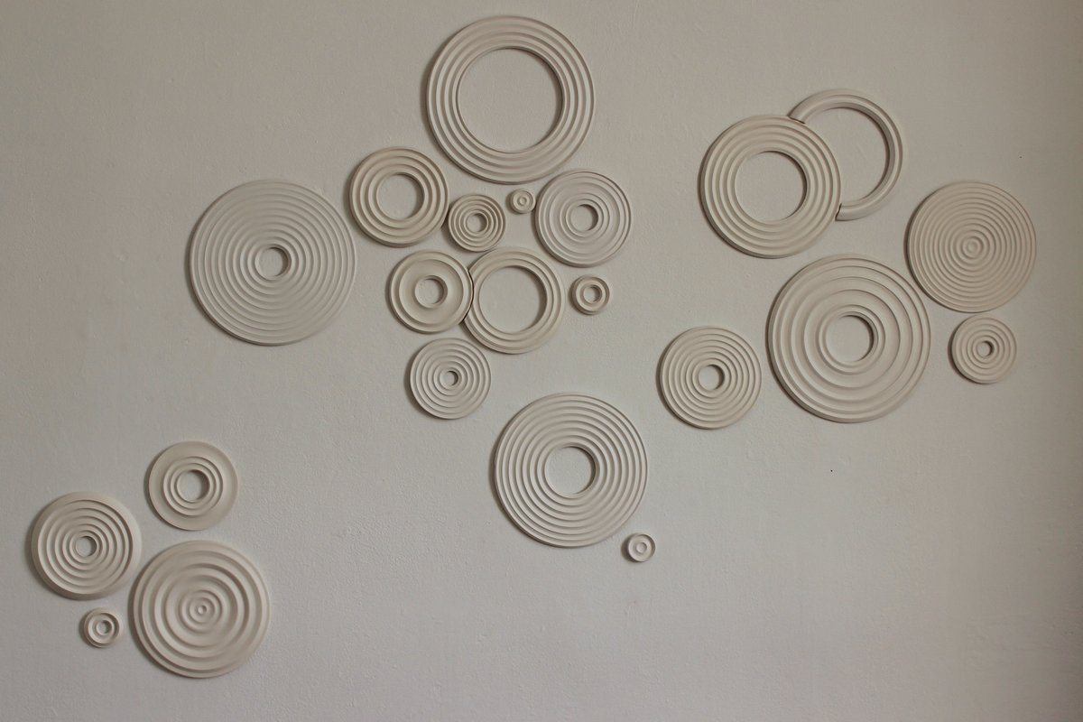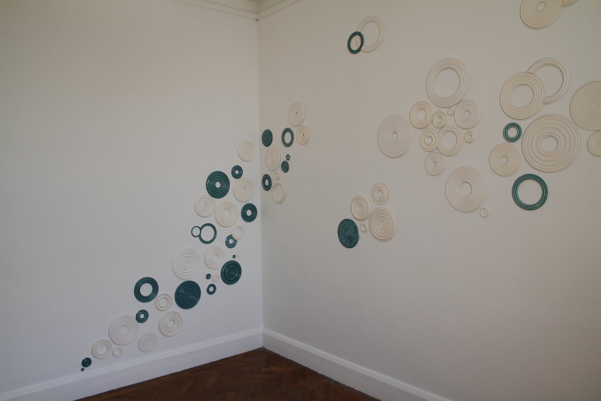 Inspired by the rhythm of nature, my hand-thrown ceramic work emulates the movement of water produced by rain drops. This visual symphony creates transient circular patterns. By placing my work on the vertical, it can be viewed in a new way. Showcasing the beauty within the rain, a celebration of the everyday.