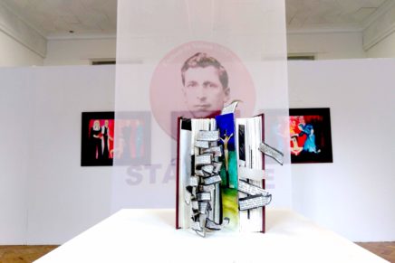 Free State is an installation of large canvas ink paintings book art and print on fabric.