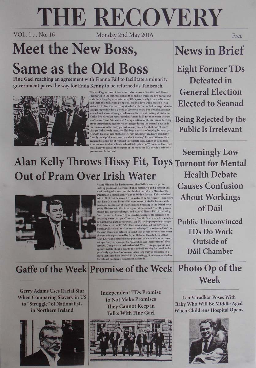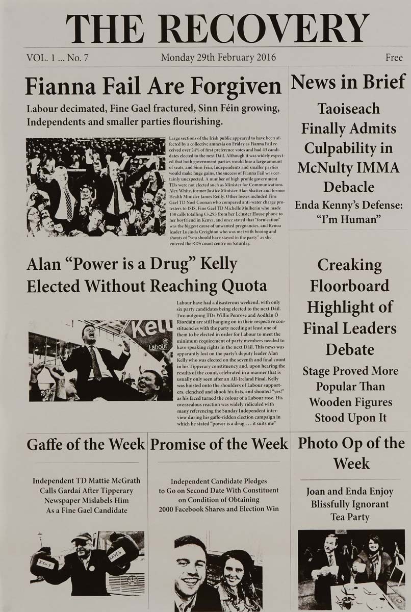 My work is concerned with political imagery and discourse. Printmaking is a constant feature of my practice which reflects the nature of election ephemera: posters, leaflets, and newsletters. The use of satire is an important element of my practice, allowing me to highlight and exaggerate potential absurdities and ironies in Irish politics.