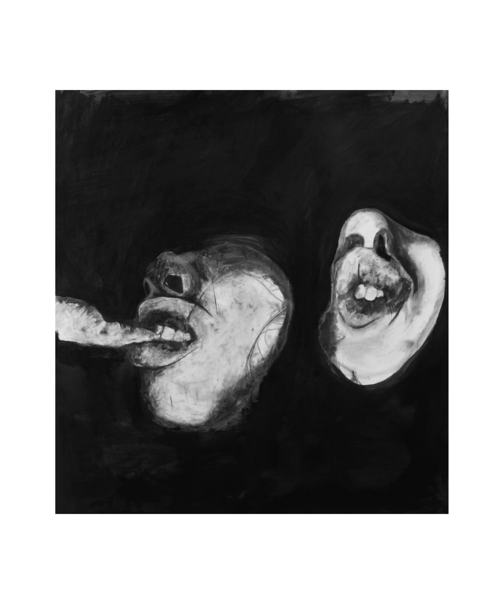 My work is focused primarily on exploring the flesh; the manipulation and distortion of the body. My process began with researching images of bruising and physical marks on bodies and applying these tonal qualities and similar mark makings to images I had photographed of myself. This series of self portraits happened subconsciously, but became an integrel part of my work.