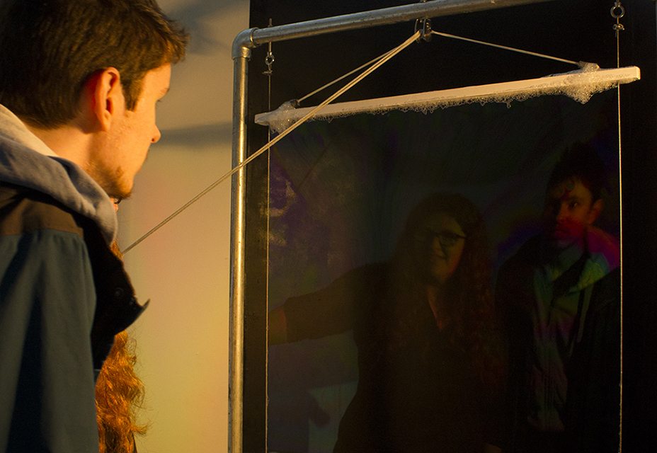 Inspired by the core ideas in quantum physics and Buddhism, my work questions the reliability and stability of our reality. While matter is almost entirely empty, the idea of a permanent self at the centre of each of us is nothing more than an illusion. I attempt to capture the sense of fluidity and elusiveness of our reality by creating dynamic and interactive sculptural work.