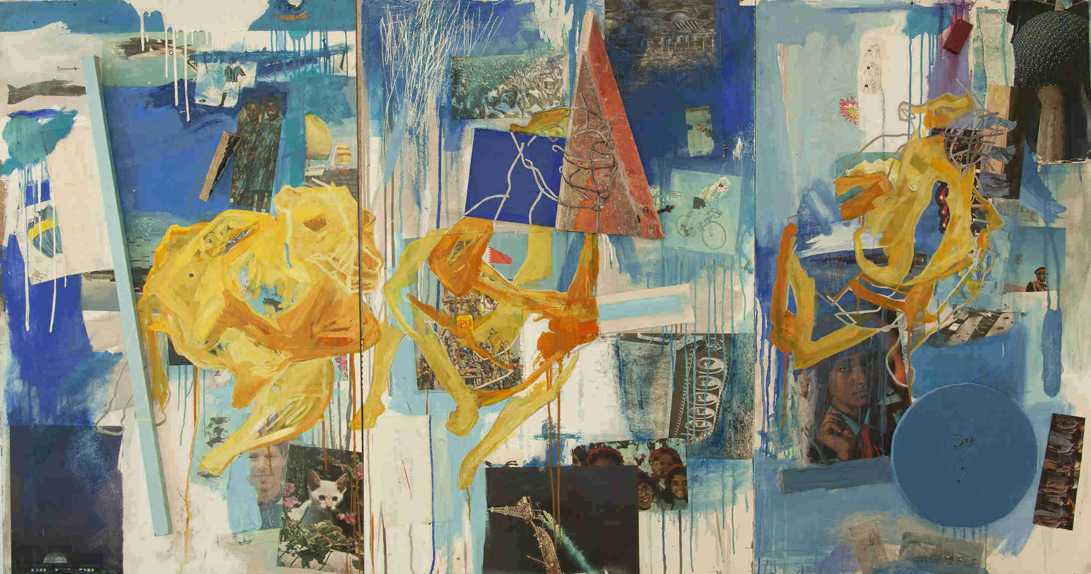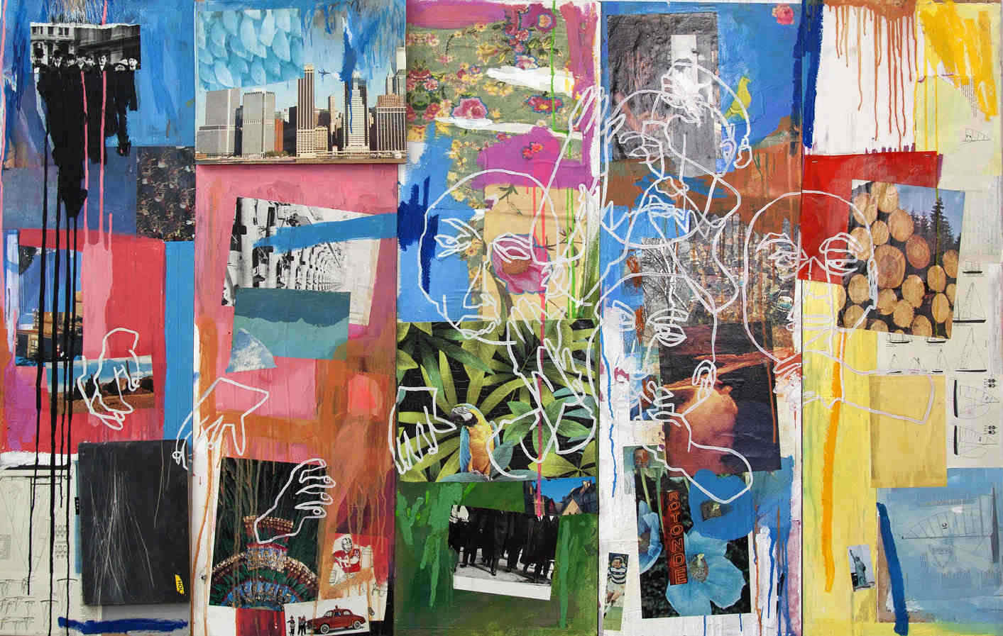 My artwork comments on social, political and cultural issues based in Britain. I would describe my work as my version of a rolling news channel bombarding the viewer with information and windows in to British Culture through abstract expressionism.