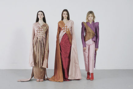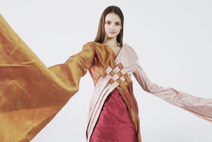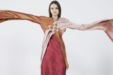 My collection takes inspiration from the Ancient Egyptian process of mummification. The controlled fabric manipulations used at the beginning of my collection contrast with the fluid lines in the latter looks, as the garments progress from their tightly bound appearance to a state of unraveling. I used raw silk as it is a natural fibre which would have been used by Ancient Egyptian Nobility.