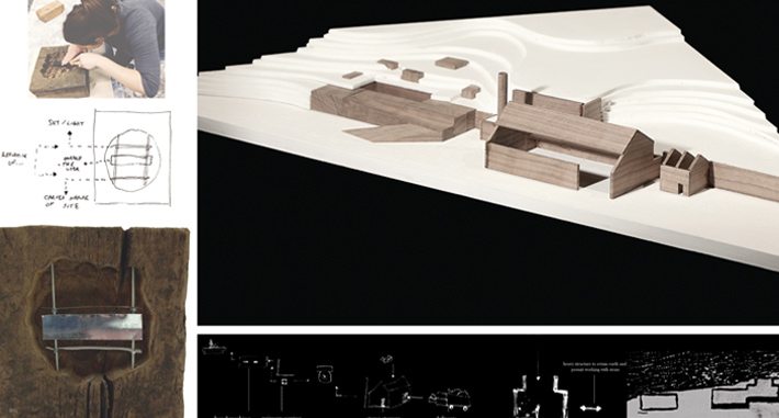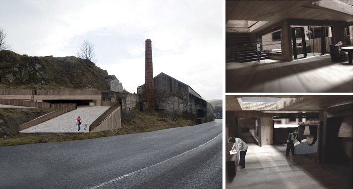 The brief for my final undergraduate project was to design a stonemason works in a disused quarry in coastal Glenarm, Co. Antrim. The approach taken was to carve my building into the terrain as both the site and programme related to the carving of stone. This was a sensitive response to the landscape, with a contemporary material palette of steel and concrete that echoed the site's industrial past