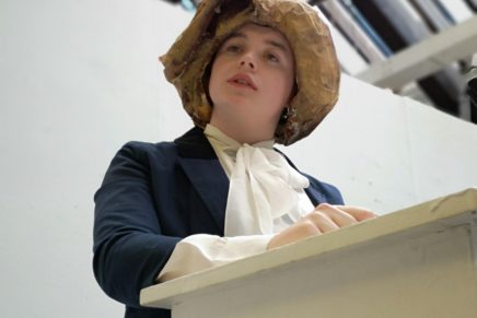 In ‘Solutions for the Border’, an alternate history is explored which deals the 1984 proposal to former British Prime Minister Margaret Thatcher to build a wall along the border in Ireland and the ghettoisation of West Belfast. The work explores these issues, but also issues of identity, time, and personas through painting, collage and Brechtian Theatre.