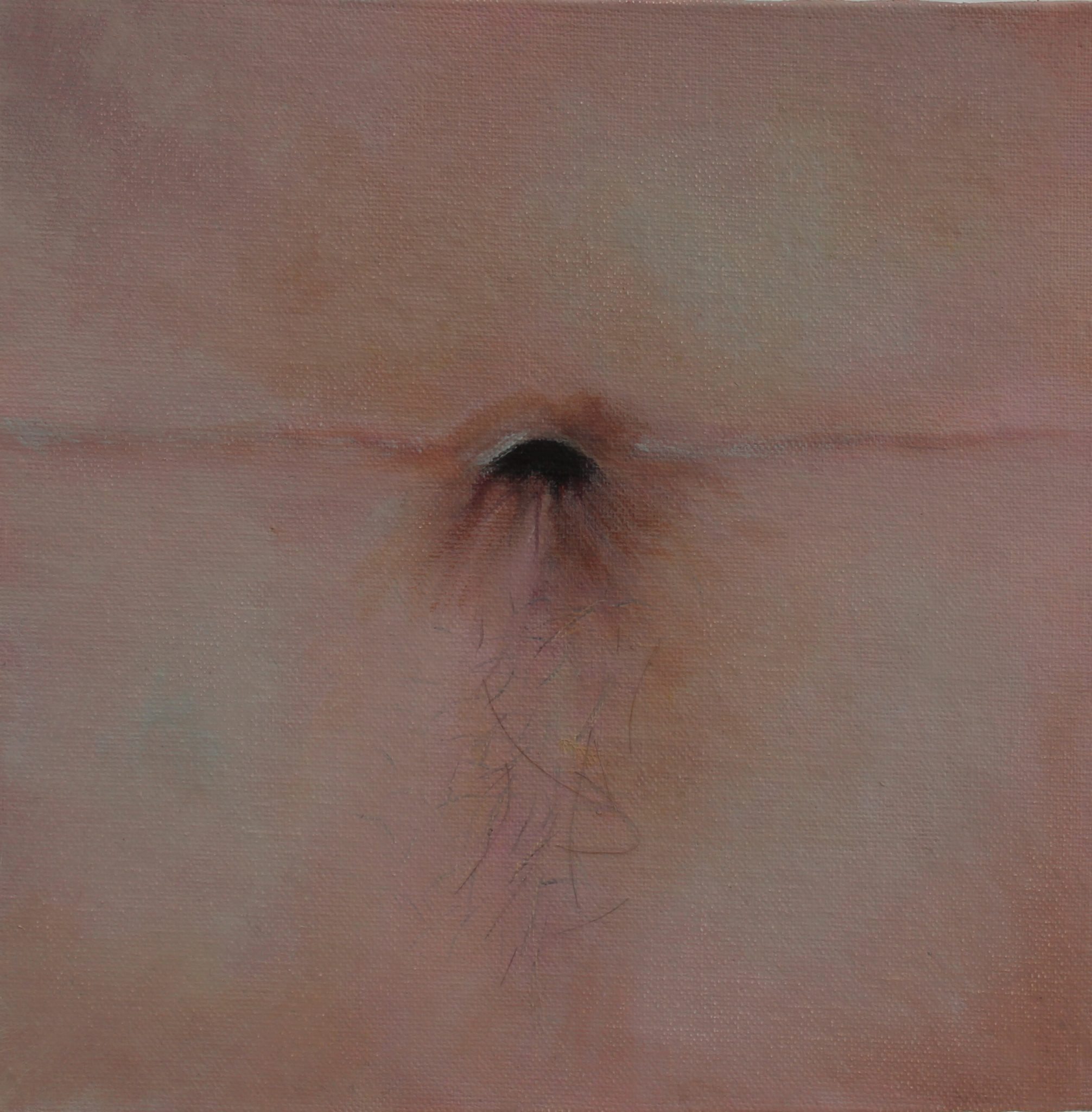 I focused on the maternal connection we all have to the uterus. Informed by a personal narrative of my journey through menstruation, fertility issues and an interest in the Matrixial Theory by Bracha L. Ettinger, I created a grid of 432 menstrual blood paintings, and a series of navel paintings in oil, some contained real hair. the media was used to interrogate its connection with the abject