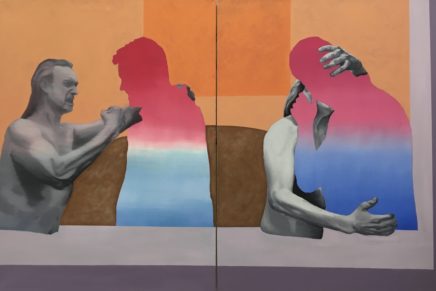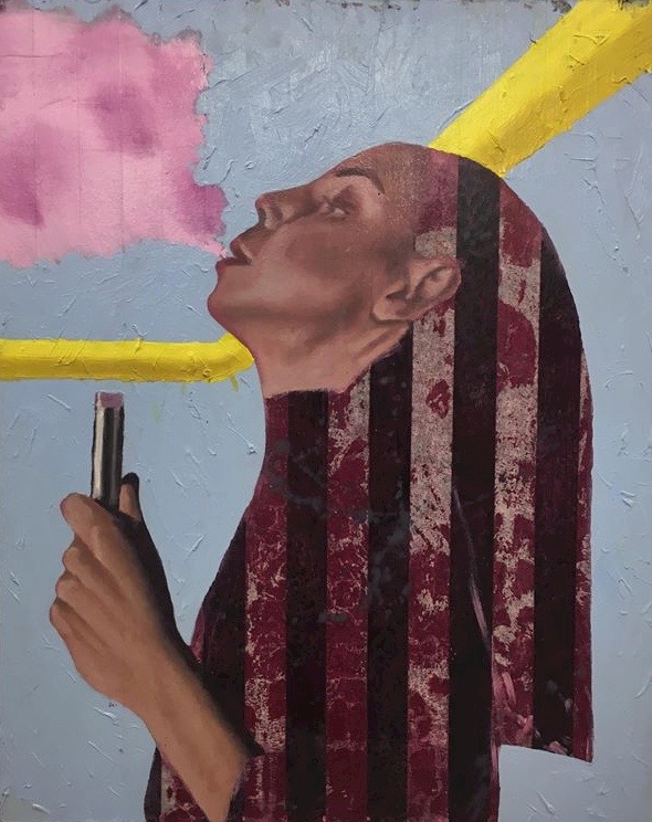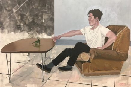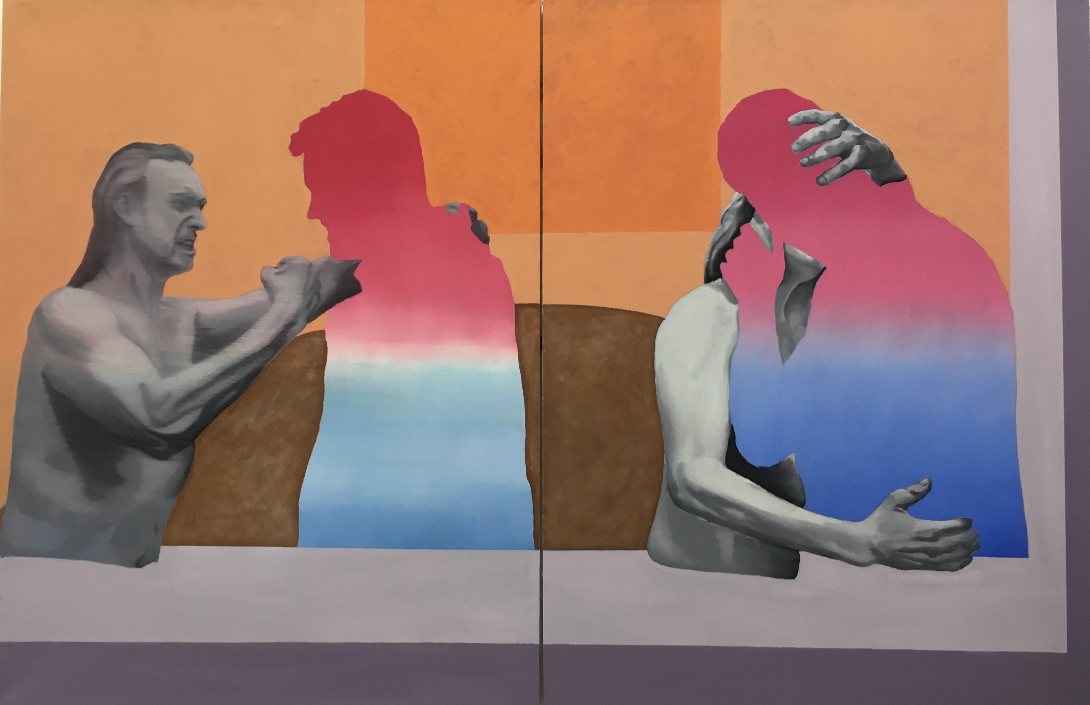 Paul Cashin is mainly interested the representation of realism and the many ways it can be achieved. He believes realism doesn't have to be straight forward, that it can be contorted, disguising its meaning. Similar to dreams, reality can often seem unrealistic. Paul creates false perspective between two images previously the same now separate through his use of tape on canvas.