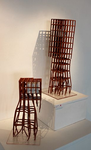I use man made materials, cover these in a modified casting slip and fire in a burn-out. All that remains after the firing is what the natural process will allow.