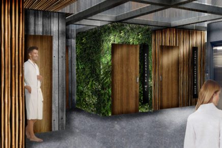 The intervention strips the interior back to expose the original stone walls and wooden trusses. New box accommodations stack over 2 floors, lightly touching the exterior walls and creating a dynamic interior space. The interior scheme filters light like a forest, encouraging exploration, reinforcing privacy and providing an oasis in the bustling metropolis.