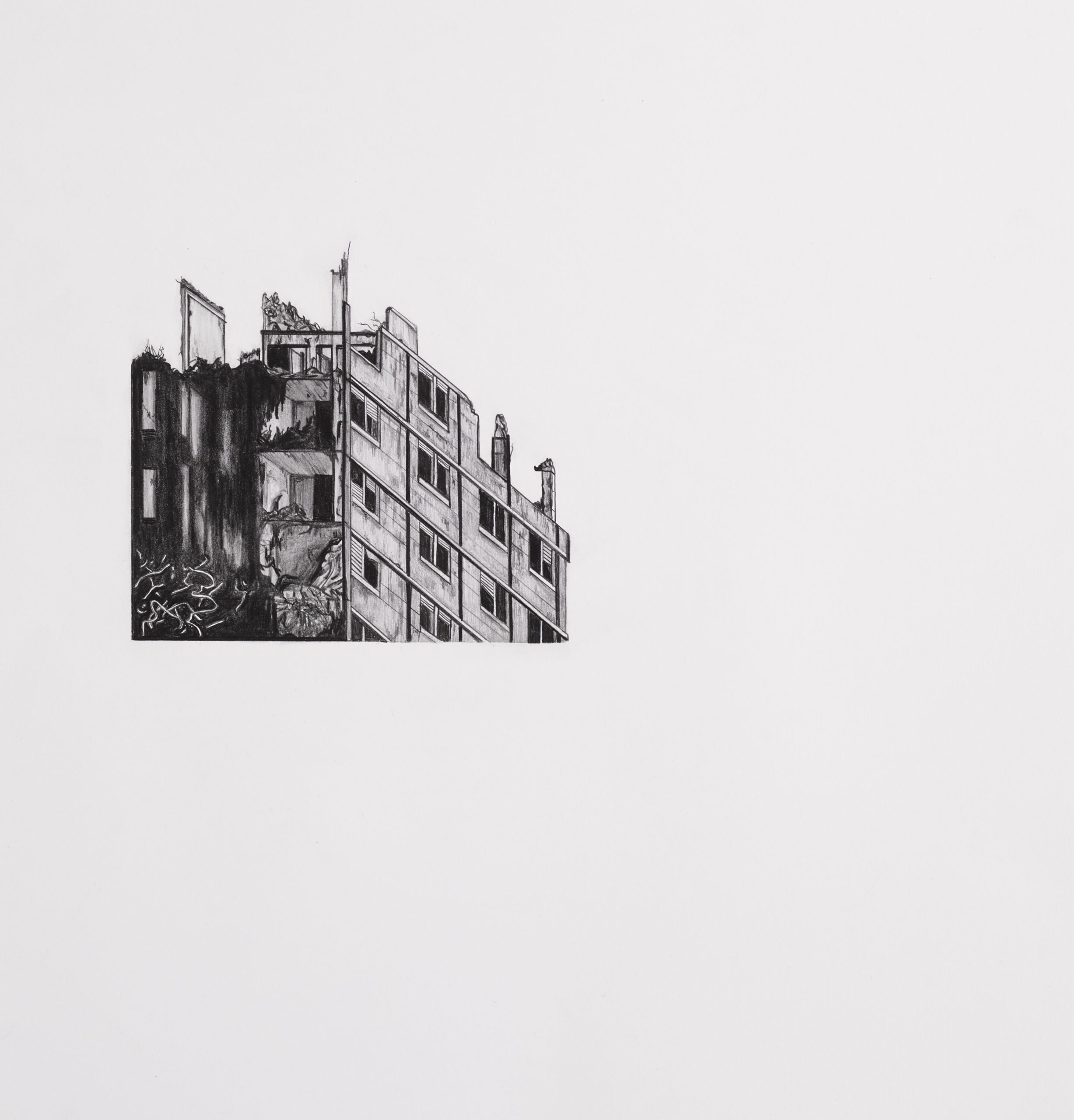 My work considers concepts of trace and perception to explore materiality and temporality within architectural space through experimentation with drawing, carving and photography. The relationship between memory and space is examined in my practice through the defamiliarization of everyday vestiges of domestic activity and phenomena. Through photography and drawing I document and produce ambiguous fragments and fictions of the domestic, operating between ideas of interior and exterior, destruction and construction, permanency and ephemerality, the familiar and the unfamiliar. The resultant pieces consist of fragmented and abstracted scenes, landscapes and imagery of spaces that were once familiar.