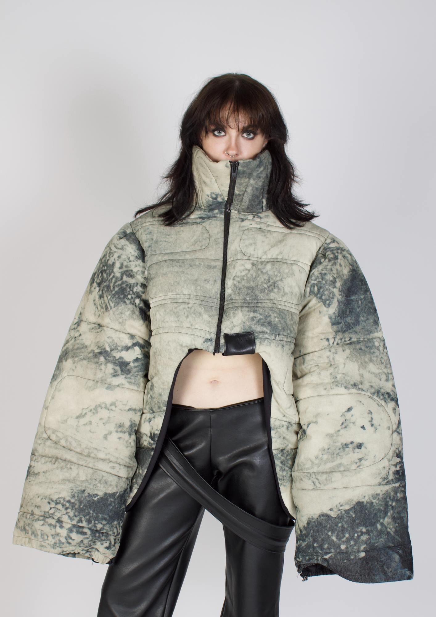 As the designer of "1968", my design ethos revolves around using fashion as a powerful medium for storytelling and emotional expression. "1968" is a deeply personal collection created to honor my father, who tragically died in a plane crash. Combining leather and denim, the collection symbolizes resilience and durability, essential for navigating grief. The airplane wing-inspired silhouettes and grunge aesthetic reflect the raw reality of loss, with spray-painted '68's paying homage to my father's birth year. Intimate touches, like my sister's poem and my grandmother's hand-knitted labels, weave familial love into each piece. My design ethos revolves around emotion and storytelling, similar to how Alexander McQueen and Vivienne Westwood infuse their work with personal narratives and bold statements. This collection continues my journey of using fashion to evoke emotion and empower individuals. By addressing the often-unspoken theme of grief, "1968" fits seamlessly into contemporary art, offering a platform for dialogue and connection. Like my previous work, it challenges societal norms and encourages self-expression, inviting viewers to find strength in vulnerability. Inspired by the likes of McQueen and Westwood, my work explores the intersection of personal history and broader social issues. Techniques such as spray painting and distressing denim are crucial to the collection, adding layers of meaning and texture that mirror the complexities of loss. This approach not only enhances the visual impact but also ensures the longevity and resilience of each piece. "1968" fits within a larger series of projects where I explore themes of love, loss, and memory, contributing to an ongoing conversation about grief in art and fashion. By integrating personal stories and emotional depth, my work resonates with audiences on a deeply human level, aiming to inspire and empower through shared experiences. As with all my collections, I am committed to using eco-friendly materials and ethical production methods, aligning with my belief that fashion can be a force for good. "1968" represents a fusion of personal history and contemporary relevance, a testament to love's enduring power and an invitation to break the silence surrounding grief. It celebrates individuality and self-expression, aiming to inspire and connect, while contributing to a more inclusive and forward-thinking fashion industry.