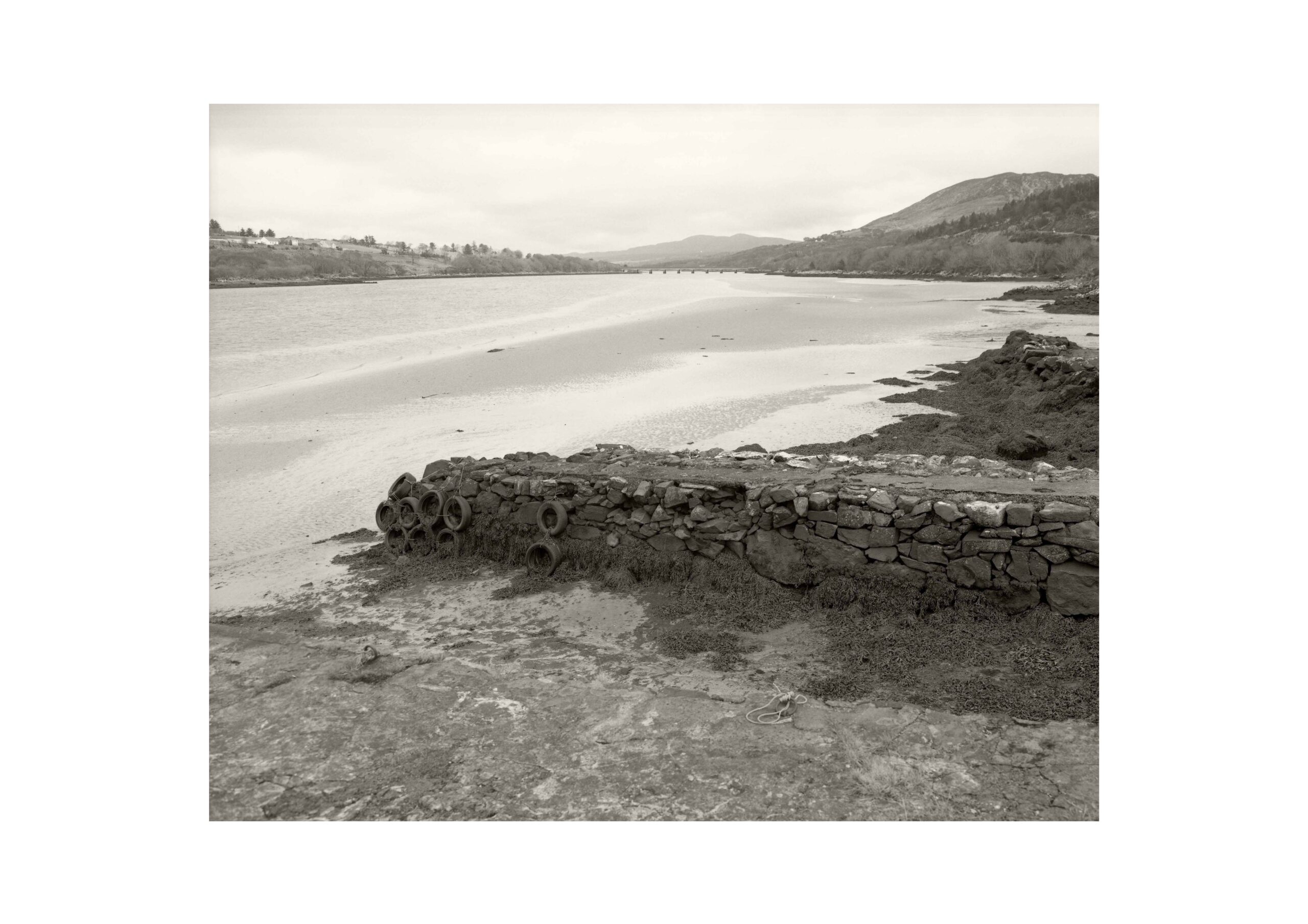 My practice explores our interventions on the land, and interpretations of the landscape, and uses images of the land to examine perception, looking, and lost histories. Like a kind of archaeology, by looking closely we can peel back layers, perceiving how we shape and alter the land; and how we conceive of meaning in the land. Looking at the land can tell us a lot about looking itself - the politics of looking and seeing, the social drivers of what we notice and what we ignore, the things we remember or forget. In Landscape & Memory, Simon Schama wrote that “it is our shaping perception that makes the difference between raw matter and landscape”. The history of landscape imagery deeply informs what we see when we look at the land. Whether creating or looking at landscape images, we carry that visual history with us, a cultural context that profoundly affects our perception and understanding of the environment around us. In an effort to challenge our conventional readings of the landscape, I’m often drawn to the apparently featureless and unnoticed. The work presented here, from the series Piers & Harbours, exposes a forgotten remnant of one of the most tragic and consequential events of Ireland’s modern history - the famine of the 1840s. We are familiar with the building of roads and walls as public works. The coast, too, is littered with the sites of piers and harbours proposed during that time, their history now lost under the accreted layers of subsequent context.