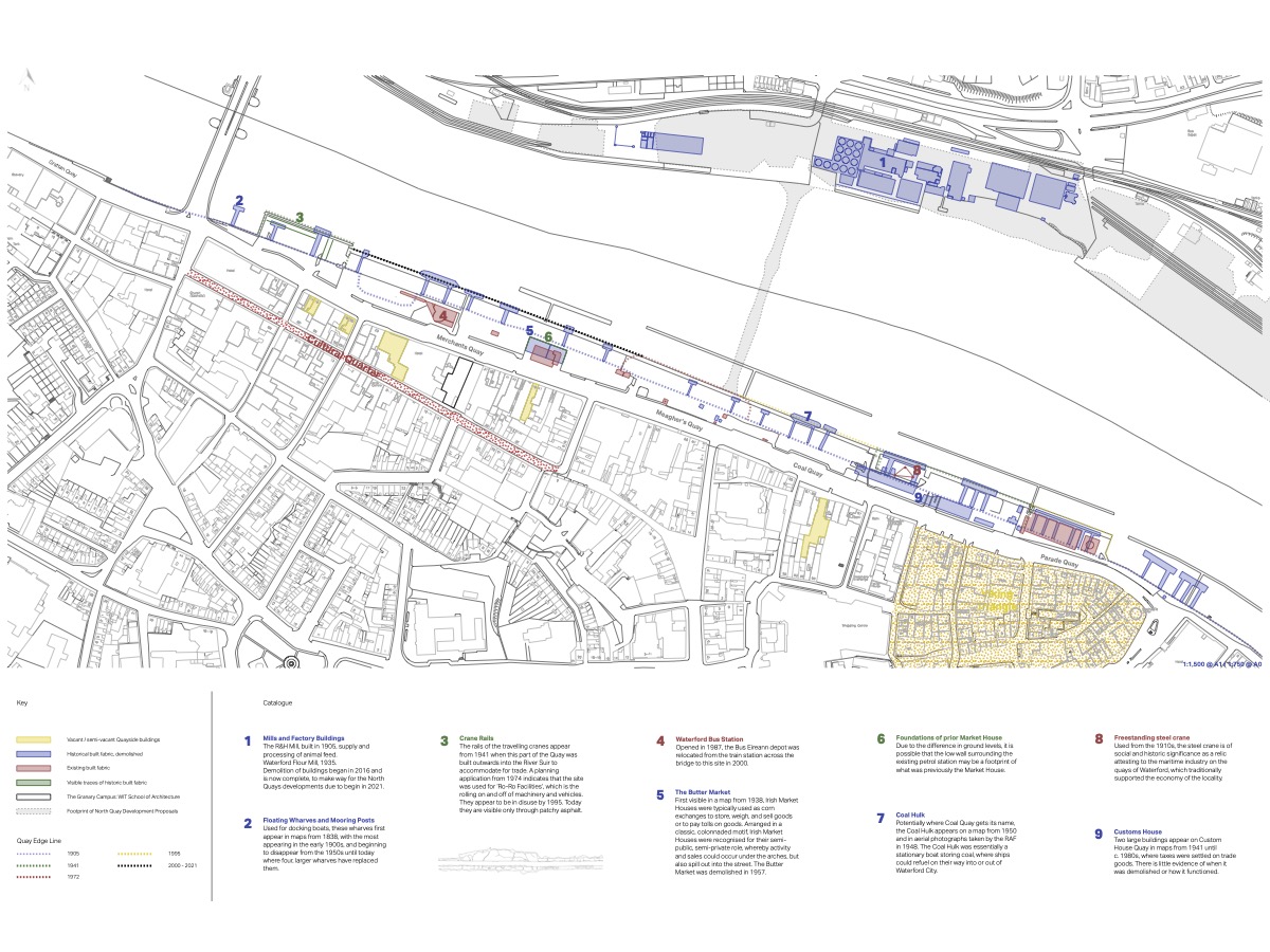 The thesis recognizes the heterogeneity of architectural practice as more than the construction of buildings and consciously engages with advocacy as a central responsibility of architects. Through adaptive re-use of vacant Quayside buildings with little new construction, the focus of the thesis is concerned with conceiving of a strategy of how to approach a large open space, and the method of getting there through a process of removal, replacement, and adaptation to create a more responsive environment that is useful to the people who inhabit it, and that can accommodate for the needs of Waterford as they change into the future.