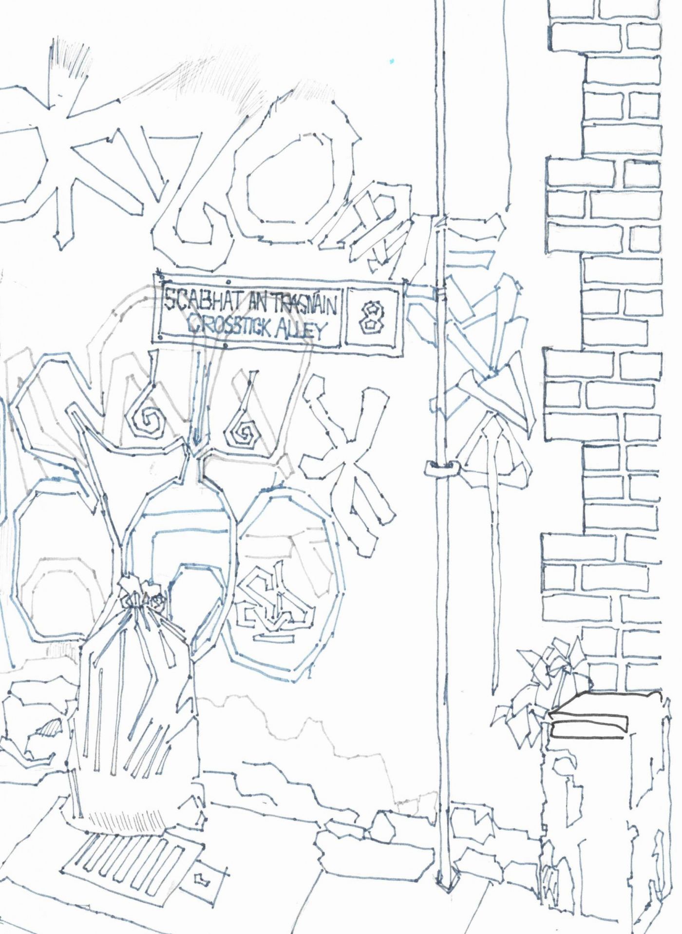 In my current artwork, I connect with the cultural narrative of ‘making’ in the Liberties. This rich history in textile manufacturing woven into the very fabric of the community is my inspiration for a piece entitled ‘Made in the Liberties’.