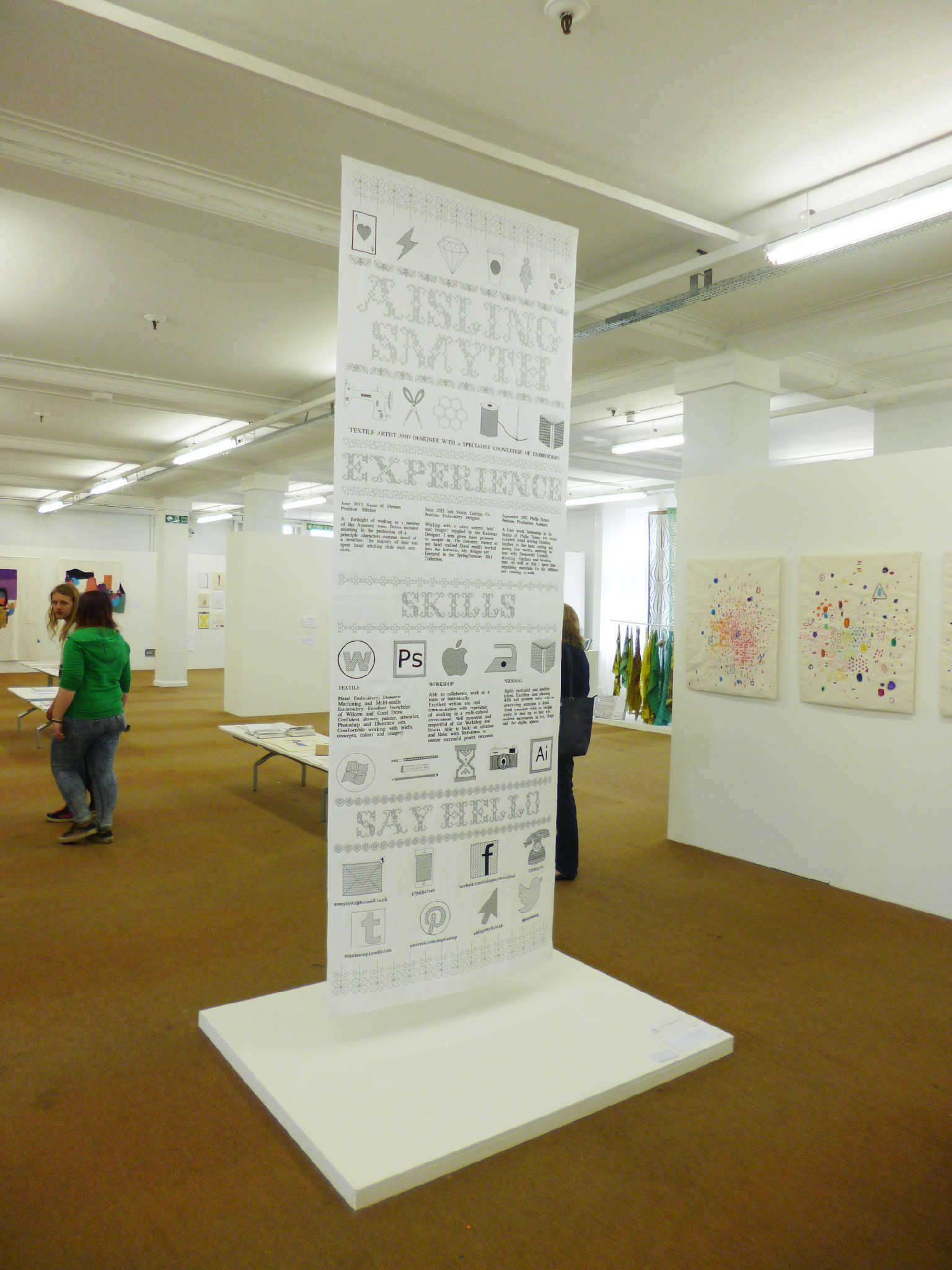Aisling Smyth is a textile artist and embroidery designer who is inspired by the historical and motivated by the modern. Aiming to drive needlework into the 21st Century, Smyth uses modern imagery, semiotics, and geometric patterns to create zesty, illustrative embroidery designs. Working mainly with the Multi-needle machine and digital software, she proudly labels herself as a 'Digital Crafter'.