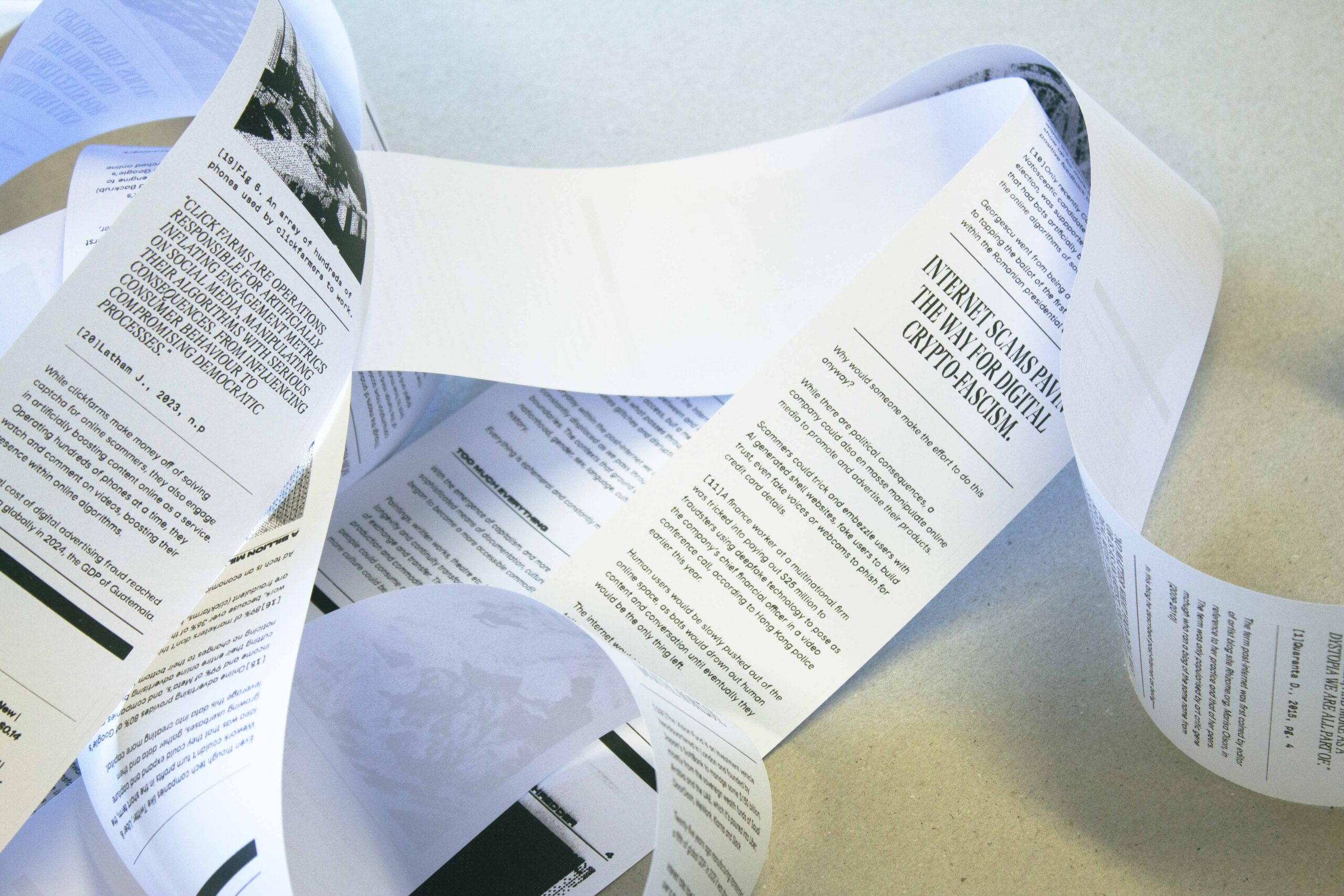 A blackhole is a mass collapsing itself into existence. The internet is an infinite void several thousand times larger in storage size than the entirety of written history before it. Pulling us into its orbit, yet on the brink of total deletion. My project investigates internet culture in response to an increasingly volatile internet where obsolescence, spam, and corporate negligence has led internet histories to become defunct & erased. “The internet used to be the future, now it has a past.” - Joanne McNeil. My project is concerned with the creation of physical objects to avoid erasure and to document the internet culture that is endangered by its collapse. Vinyl records, tapestry and receipt machines become vehicles of history and preservation in the face of a ‘Digital Anthropocene’.