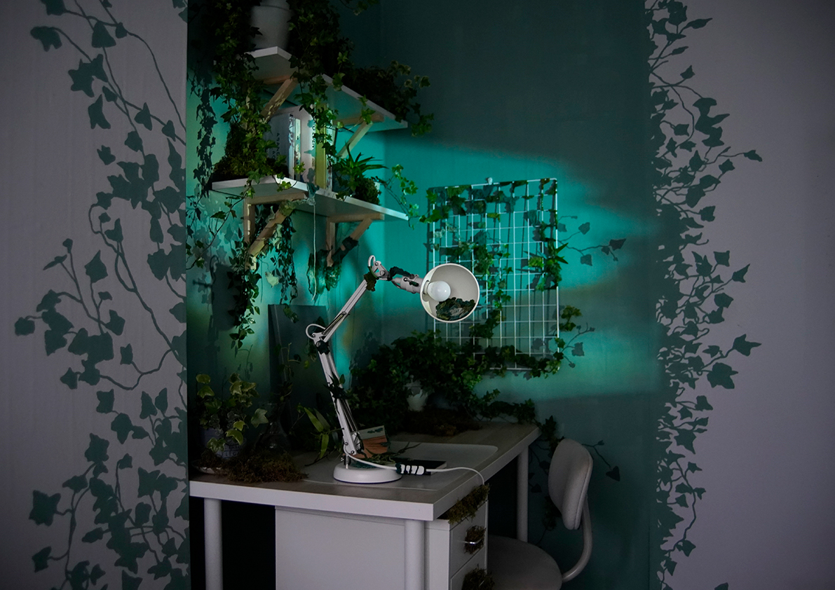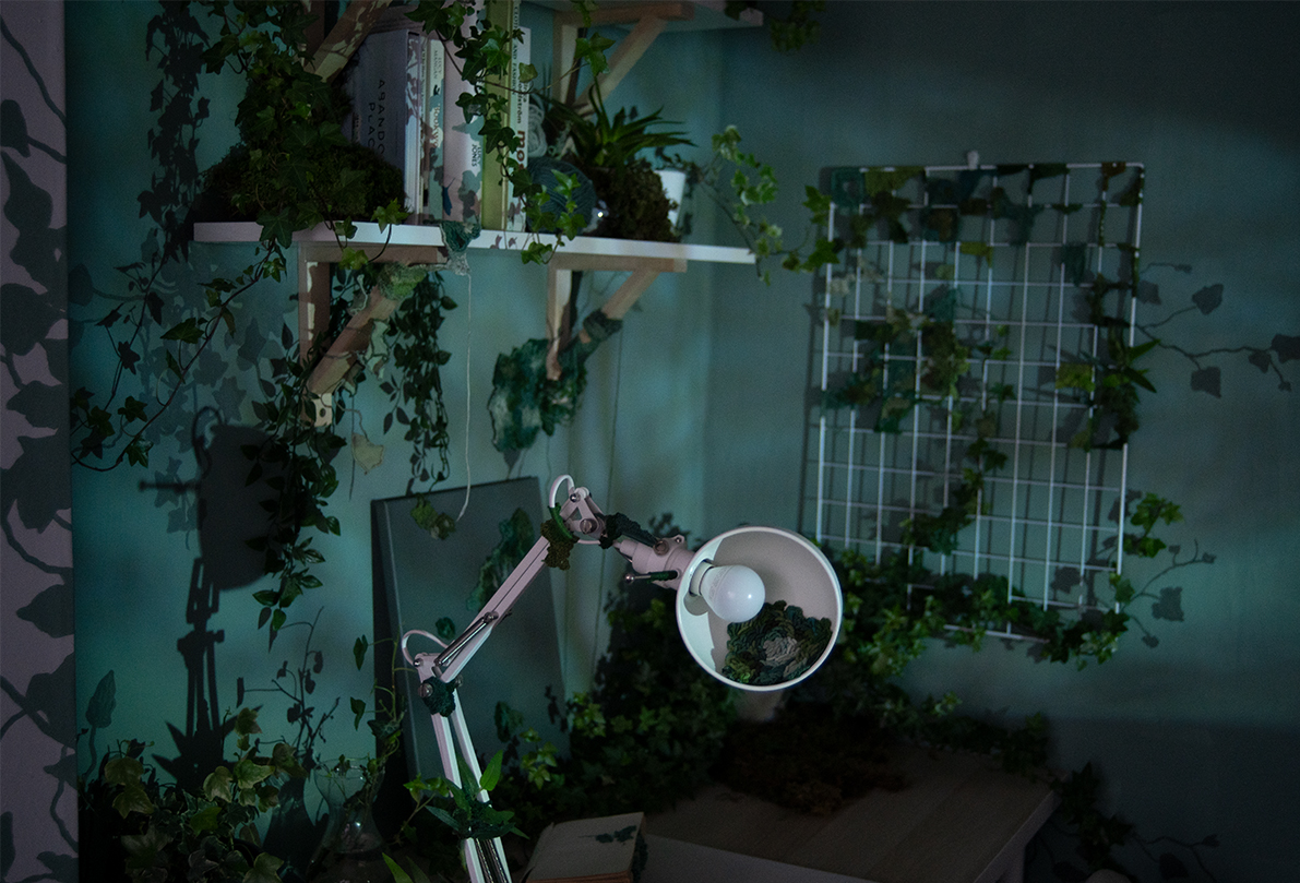 This work, titled "Biophilia and The Domestic" is a response to both our innate hunger for nature and growing detachment from it in domestic spaces, to the detriment of our physiological and emotional wellbeing. Are plastic plants and artificial wood textures in our homes a halfway point, sacrificing the real thing but needing some tie to it however far removed? Nature interacting with our belongings often suggests our absence, but in this work the opposite is true.