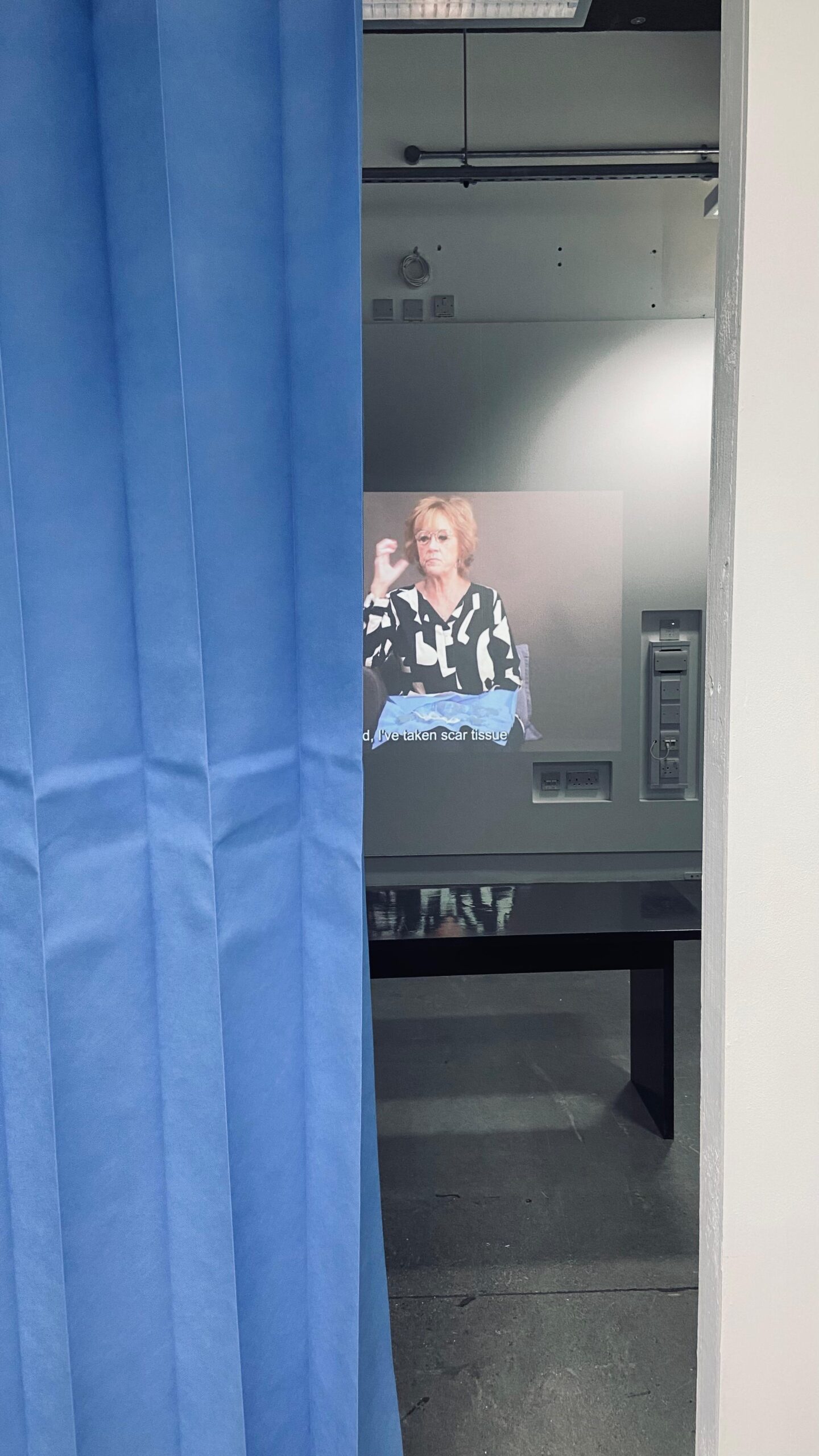 "Hear Me, See Me" My practice engages with social issues related to women's health. This body of work, "Hear Me, See Me," focuses on the experiences of Mesh Survivors Ireland—a group of women, including myself, who have undergone permanent mesh implants made from polypropylene plastic, a surgical treatment for prolapse and stress incontinence. These implants have life-changing complications, an internationally shared struggle. "Hear Me, See Me" is a multimedia installation incorporating video, sculpture, text, and textiles. I designed it to encourage open conversations, gently protest societal norms, and highlight the personal as a form of protest. The work enables survivors to reclaim their often-overlooked status through recorded and filmed conversations. The films realistically portray the physical, emotional, sexual, and psychological challenges mesh survivors face, raising awareness and strengthening their voices. At the installation's entrance, the viewer is greeted by a series of small banners lining the hallway, resembling the corridors of a hospital. Vibrant capes, each decorated with empowering words, symbolise strength and resilience. These capes feature fabric-manipulated vaginas with Mesh emerging from them, representing mesh erosion. They are placed on a steel structure at various levels; the capes highlight that they have been worn, embodying the lived experiences of the survivors. They are designed to illustrate the women as superheroes. As wearable banners, the capes symbolise empowerment and activism. The A1 poster is sourced from the HSE website and is marked with personal notes expressing my frustrations at the HSE about complications from mesh devices, which are not mentioned on the website. A section of it is blacked out to illustrate what women are not allowed to talk about. It is placed with blue tape to match the hospital curtain. Underneath are leaflets available for viewers to take away. A display case contains textile artworks symbolising the struggles of mesh survivors, made from heated fabric and plastic to illustrate surgical intrusions and mesh erosion. These artefacts are created encourage viewers to engage with the historical and personal elements of the issue. Inside are artefacts such as a ticking bomb, a poker, a screen-printed and padded pelvis, and a 3D pelvis with replicas of polypropylene mesh devices, these are mounted on the far wall too. A replica mesh with a ruler shows the measurement of mesh removal surgery. A wire and fabric sculpture of a clenched fist. Descriptive words under each specimen help viewers understand their significance. The film is surrounded by a hospital curtain divider, creating an intimate space that mirrors survivors' isolation and the lack of assured privacy. This setting highlights the private nature of their stories. The film features five women sharing their stories, with the first woman's face visible and the others' faces unseen. Each woman holds a textile artefact during their narrative, seated in a homely setting with a pink tablecloth and pink stills symbolising femininity. The film captures their journey towards healing and justice, calling for change in women's health issues. Motivation and your inspiration. My motivation is rooted in advocating for women's rights and health, through my multidisciplinary art. I am driven to campaign for mesh survivor awareness, using art as a form of personal protest. Through textiles, I aim to softly but powerfully raise awareness about women's health issues and support Mesh Survivors Ireland. Through film, I empower women to speak for themselves, authentically capturing their voices and experiences. I use visual art, text, and sculpture to deepen understanding and raise awareness about their challenges. This multidisciplinary approach amplifies their stories and educates and engages audiences in supporting Mesh Survivors Ireland and women's health issues. I am dedicated to continuing my campaign and using the personal as a form of protest through raising awareness for disability and neurodiversity, including mental health issues. Through my art, I attempt to further understanding, empathy, and support for individuals facing these challenges. By increasing our voices and experiences, I aim to contribute positively to advocacy and promote inclusivity in Society. I am Influenced by the impactful works of socially engaged artist Rachel Fallon; I draw inspiration from Fallon's "8th Amendment Banners," "Apron of Power," and "Apron of Solitary." The collaborative works of Alice Maher, Rachel Fallon, and Breda Mayock, particularly the 8th Amendment banners and Fallon and Maher's "The Map from the Madeleine" series, use textiles to powerfully advocate for women's rights. This approach aligns closely with my goals of empowering and advocating for change.Sarah Corbett's "How to be a Craftivist: The Art of Gentle Protest" and the concept of "craftivism" also inspire my work. Through craftivism, I highlight the challenges faced by women impacted by health complications, particularly mesh survivors in Ireland. I develop art as a means of soft protest and conversation. "The Republic of Shame" by Caelainn Hogan, which explores the treatment of women and children in mother and baby homes by Society and the Catholic Church, resonates deeply with me as a mesh survivor. The struggles women faced are highlighted in this book. Other books that inspired me include "Caliban and the Witch" by Silvia Federici and "Witches, Sluts, and Feminists: Conjuring the Sex Positive" by Kristen J. Sollée, both of which emphasise how women have been wrongly treated for centuries.