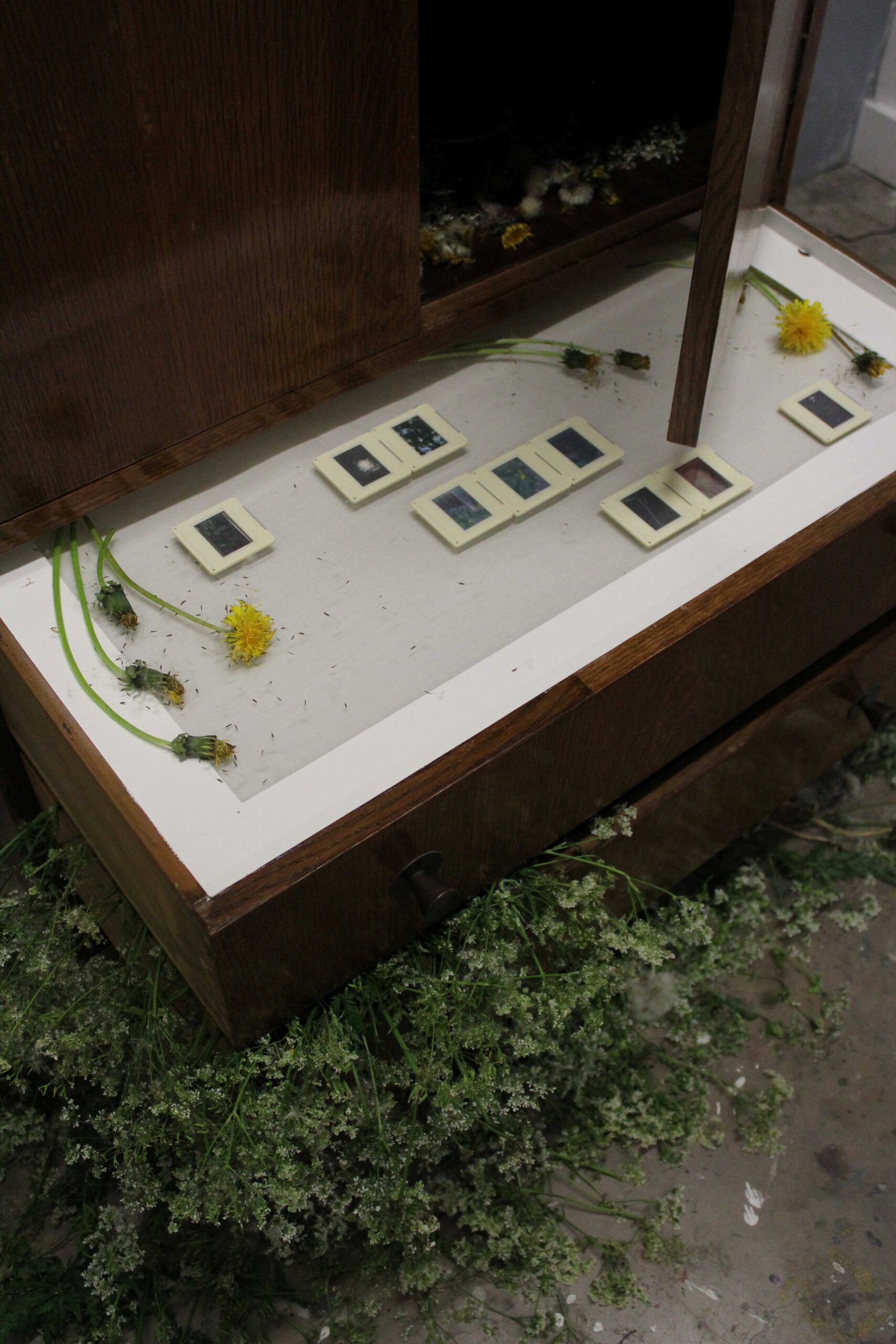 In my studio practice I am trying to interpret an aesthetic appreciation that collaborates with my perception of everyday life. To emphasize this, I use Polaroid photography that I am collecting and preserving to explore with both traditional and experimental approaches as I am also working with a scanner, 35mm film camera, and digital camera. Recently, I have been focusing on the significance of trees and the relationship between nature and human beings. I am communicating this through sentimental series of coloured Polaroids. My photographs are emphasizing a sense of belonging and becoming homesick in a new unknown place. I feel that my Polaroid camera works as a connection between nature and time to capture a sense of appreciation of current moments, it works as a tool to search for the truth. Trees as well as landscape are my main subject matter as they are reminders of memories that links with present perception of places. This method creates a narrative imagery and can expand into sequences, film, and an installation. To indicate this, I started to develop an idea of creating installations that would communicate a feeling of sentiment within the viewer. To achieve this, I am having my photographs presented with furniture. Wooden furniture might open a dialogue that could remind the audience of precious memories. In exploration, I began to experiment with wooden drawers, tables, flowers and light boxes to combine them with some of my colour polaroid's. I feel that flowers can transform the installation as it will illustrate the appreciation of living nature. Scent suggests the feeling of home and so can audio of singing birds. The aim of this is to make the audience both see and feel my personal attachments towards natural surroundings that remind me of my beloved home.