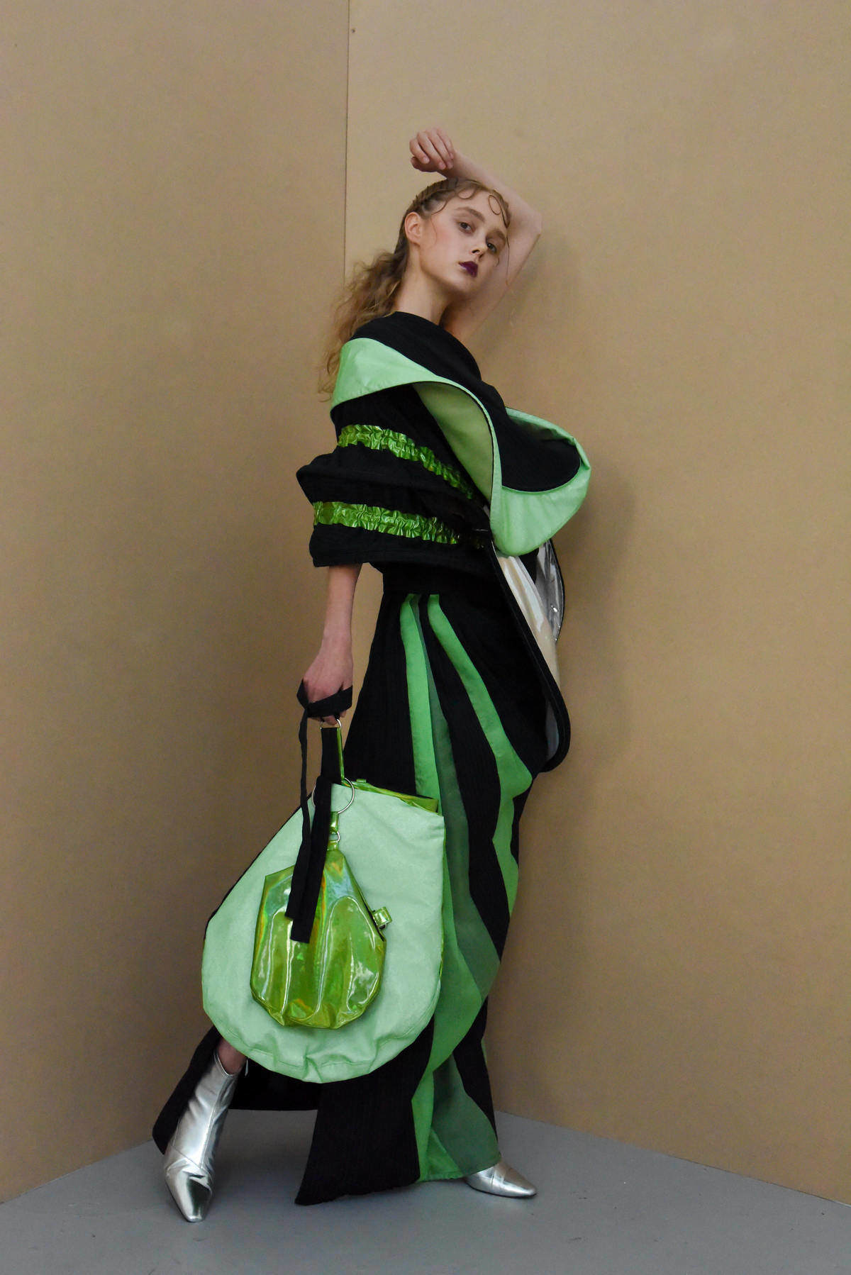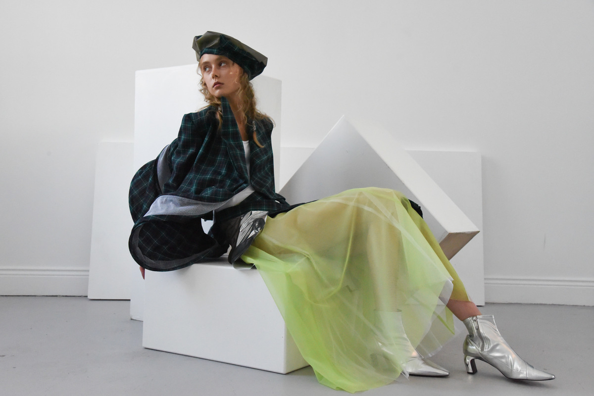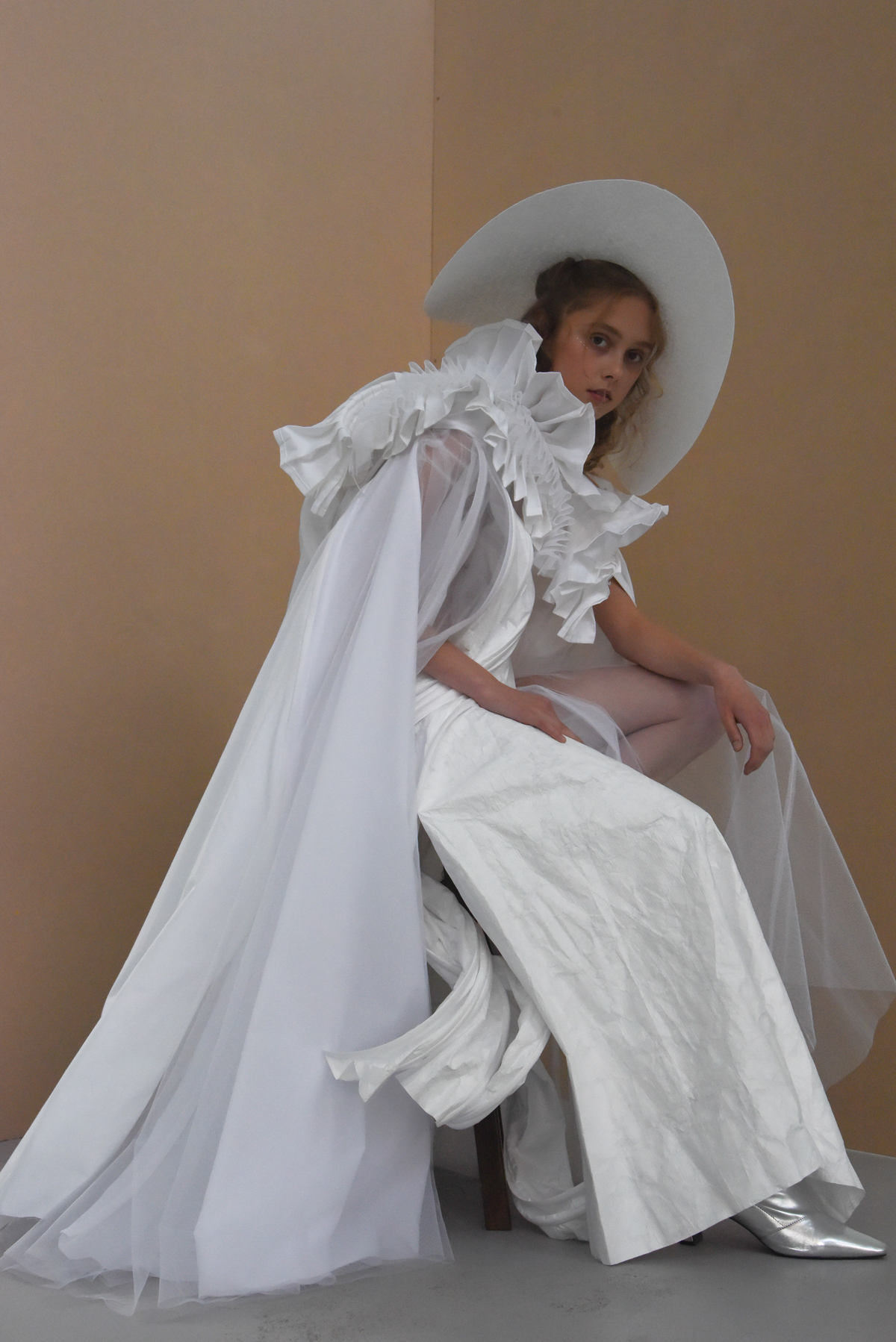 Through my own personal experience my collection, “Discord” is a story of resilience and the will to overcome. My pieces are designed to show the chaos of the human mind. The bold colours and textures of the collection clash purposefully to evoke sensation in the clothing. Lines blur from beneath the surface and flow continuously around the body, creating powerful and contemporary silhouettes.