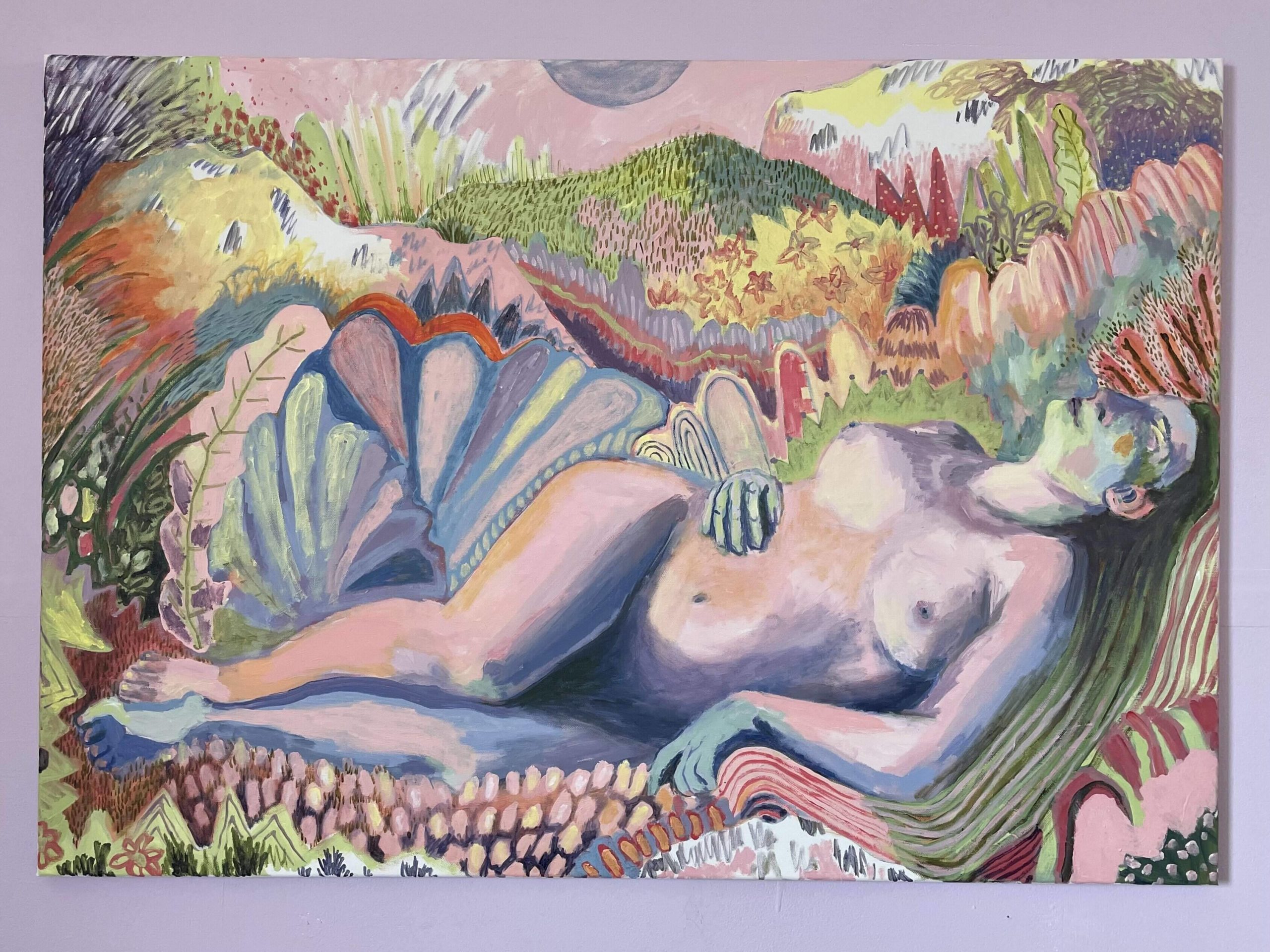 My work explores the imaginary experience of the dreamscape; a night portal into the psyche experienced in the presence of the moon. The natural world's untamed freedom and wholeness is employed as a means to depict ethereal spaces that hold still the fleeting state of flux between wakefulness and sleep, the landscape acting as a mirror for the psychological terrain. The vastness of an open landscape is mimetic of the deep internal mechanisms that push our lives in certain directions. Rooted in Carl Jung's ideas surrounding dream analysis and how the decryption of the unconscious can act as a catalyst for self awareness and transition towards a state of internal harmony, the dreamscape here is presented as a place of tranquillity. The work prolongs the slumbered brush with deep intuition that has a habit of disintegrating in the morning light.