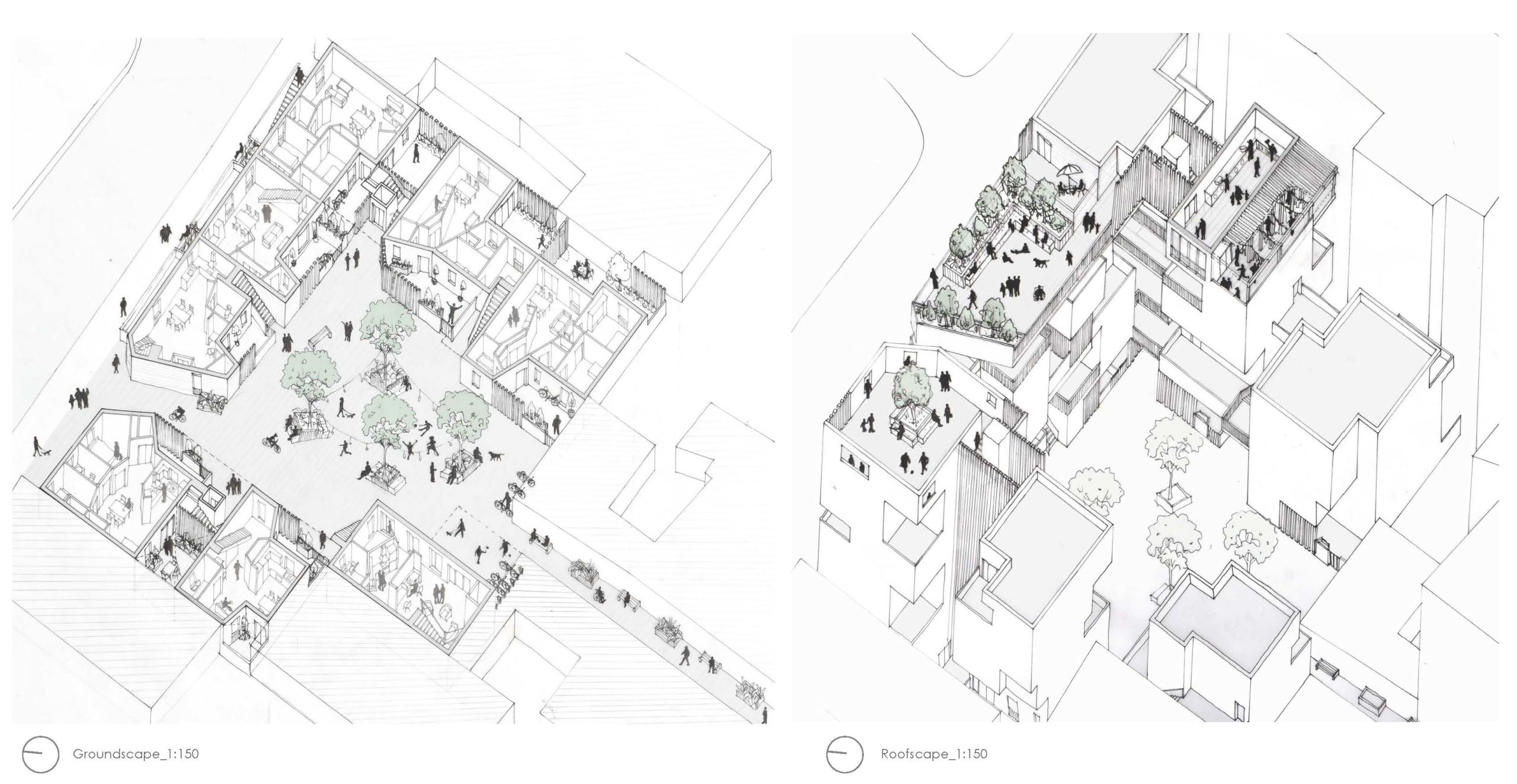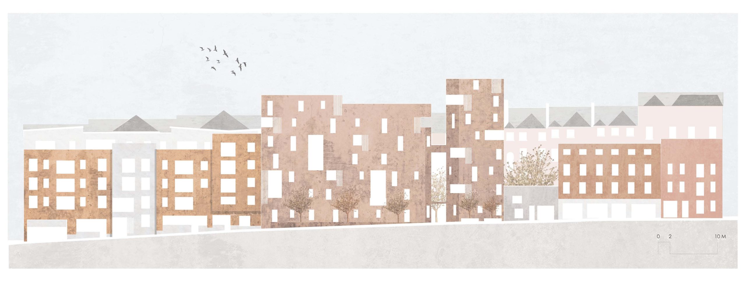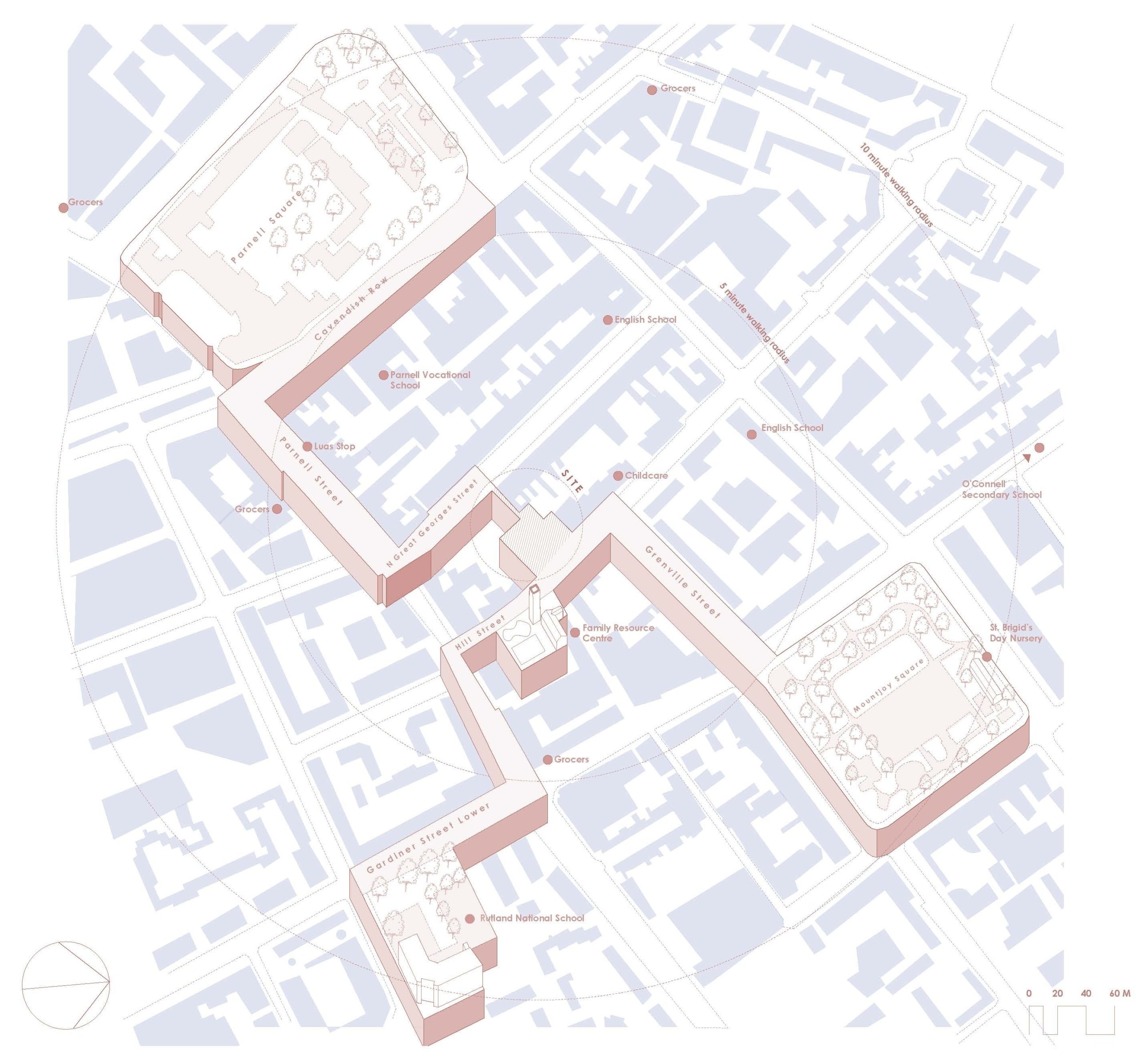It relies on in-depth research of the context, irregularities of place, community feedback and one-on-one interviews, to develop a method of designing and way of living that is both bespoke and unique to the community it is built for. It proposes a piece of architecture on Hill Street, Dublin, that responds to fragments of gathered stories, references, and tales of social relationships.