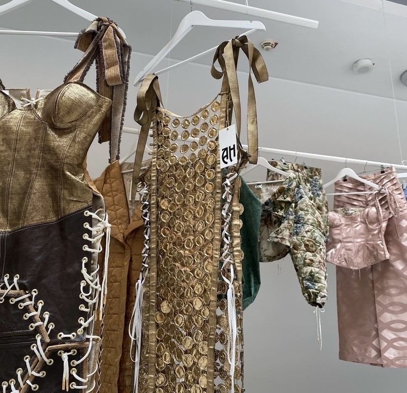 Waste to Wardrobe - Redefining Fashion with an eco-conscious mindset In my final graduate collection, "Waste to Wardrobe," I embark on a transformative journey that reimagines fashion design through an innovative, fabric-first approach. Inspired by my unwavering commitment to sustainability and a profound concern for our environment, I sought to create a collection that seamlessly blends trendsetting style with eco-friendly consciousness.Drawing inspiration from the richness of historical textile techniques, I embraced patchwork and quilting, infusing them with a contemporary flair that resonates with the fashion sensibilities of 2023. Upholstery, denim, and leather – once destined for landfills – became the vibrant medium through which I breathed new life into fashion's narrative.At the core of my creative vision lies a profound appreciation for Ireland's mesmerizing landscapes, specifically the patchwork fields and the awe-inspiring Giants Causeway with its hexagonal steps. These iconic landmarks sparked the colour palette for my collection, reminding us of the beauty of our surroundings, and simultaneously evoking the urgency to protect and preserve them.To elevate the essence of repair and rejuvenation, I turned to the Japanese art of Kintsugi, where golden accents symbolize the beauty found in embracing imperfections. In this spirit, I adorned my pieces with exquisite gold hardware and eyelets, transforming flaws into celebrated elements of uniqueness.The pristine white thread and ties that punctuate my creations symbolize fresh beginnings and renewal – a powerful representation of the colour white and its profound significance in my design philosophy.Versatility is the cornerstone of my collection, carefully curated to empower individuals to mix and match effortlessly, creating diverse looks that can be cherished and worn time and again. Waste to Wardrobe embodies the idea that sustainable fashion can be not only environmentally conscious but also inherently stylish and adaptable.Through this collection, I aspire to ignite a paradigm shift in the fashion industry, encouraging fellow designers and consumers alike to rethink their approach to design, embrace upcycling, and embrace the beauty of clothing with a story to tell.In a world yearning for change, "Waste to Wardrobe" is a resounding call to action, a harmonious union of creativity and conscience that seeks to redefine fashion's impact on our planet. I hope that my collection will inspire others to change their perspectives, to appreciate the limitless possibilities of upcycled fashion, and to embark on a transformative journey toward a more sustainable and responsible future.