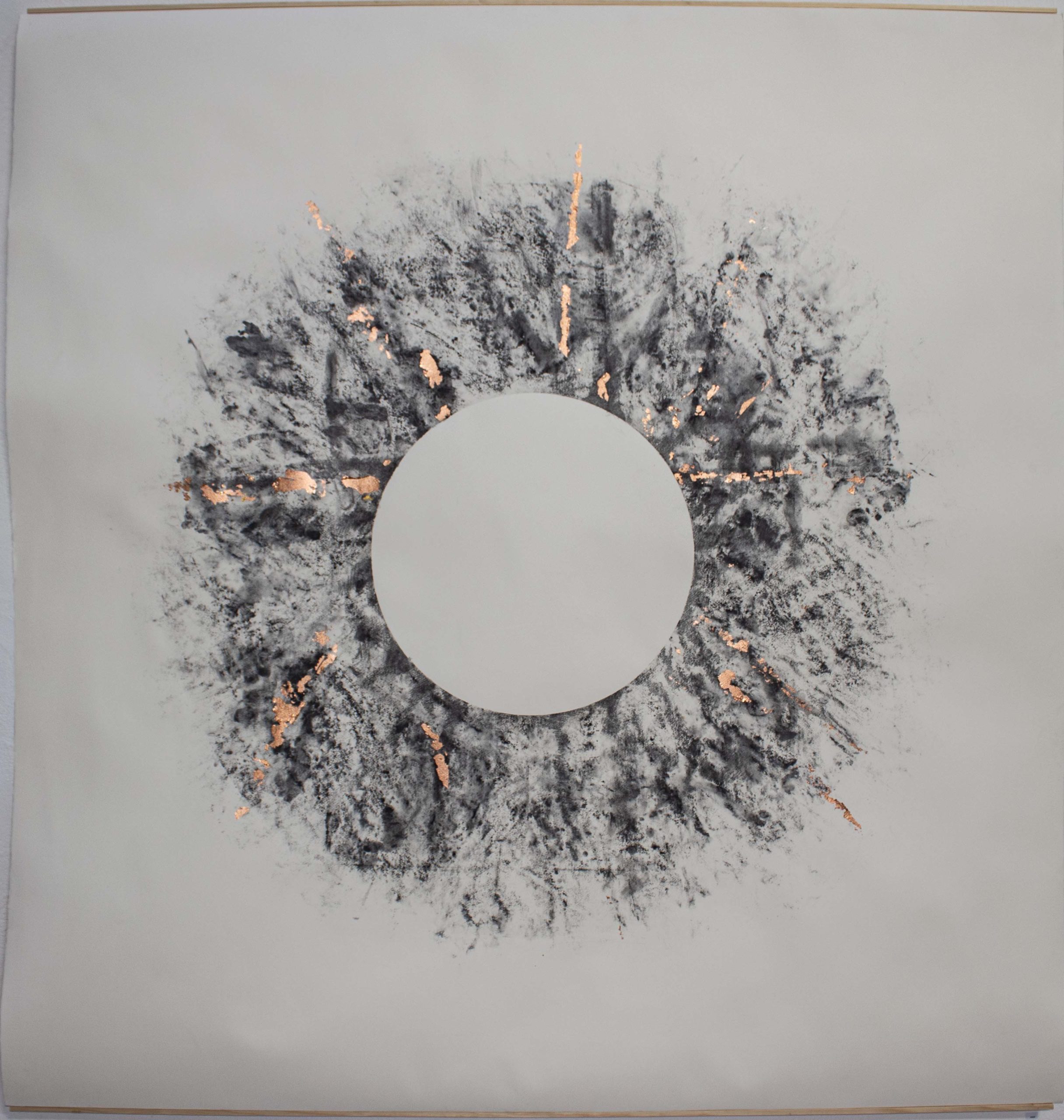Processes and materials used include; corroding copper to make ink, applying copper leaf, a metal found in earth and human tissue, known to