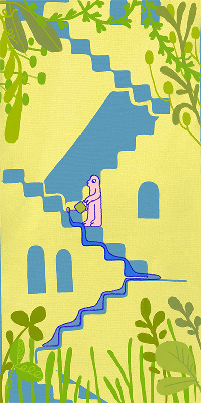 ‘Stepping On My Own Foot’ was conceived from the want to combine my two practises, fine art and animation. I wanted to push the conventions of animation to make something new which goes beyond a short film and into the realm of experimental video art. My work is informed by Soviet Experimental Animation, Philosophy, Naive/ Outsider art and Illustrative work. I also aim to integrate ideas from my own inner world into all the art I create, creating an outlet for myself and hopefully others to project onto and take their own meaning from. All my work is a bid for connection with others, an attempt at visualising my own experience in the hope that others can understand me and in turn themselves better. In ‘Stepping On My Own Foot’ we see a nameless being ascend an endless staircase as a series of vignettes from dreams and reality unfold beside him. Each memory shaping his climb and culminating in a surreal meditation on life, death and birth. ‘Stepping on My Own Foot’ is a visual and emotional exploration of the human journey, presented through a blend of symbolism, abstraction, and deeply personal yet universal imagery. The protagonist, a formless being, serves as a reflective surface, inviting viewers to imprint their own memories, emotions, and interpretations onto the narrative. The staircase symbolizes the persistent climb of daily life, while the surrounding vignettes act as echoes of lived experience, dreams, anxieties and desires. This barrage of memories and experiences culminate in the exasperated being eventually giving into the spectre of death, a bird, the same creature which brought him into this life. Influenced by absurdism and stream-of-consciousness storytelling, the film resists conventional narrative structure to instead evoke feeling and introspection.The surreal visuals and nonlinear rhythm allow the audience to navigate between the conscious and subconscious, emphasizing how every step forward in life is shaped by the weight, or lightness, of memory. The film ultimately asks: how do our inner lives influence the paths we walk?