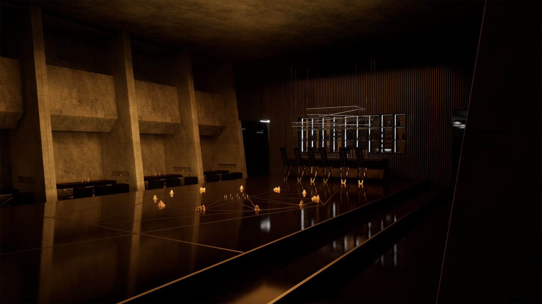 For my final year project I wanted to create a big, underground space, a crypt-like environment with oppressive and ominous atmosphere. Taking inspiration from real buildings such as Printworks and Berghain, and fictional media like Suspiria and Dark Souls, I ended up designing an occultists' nightclub with three distinct rooms that could be explored by the viewer.