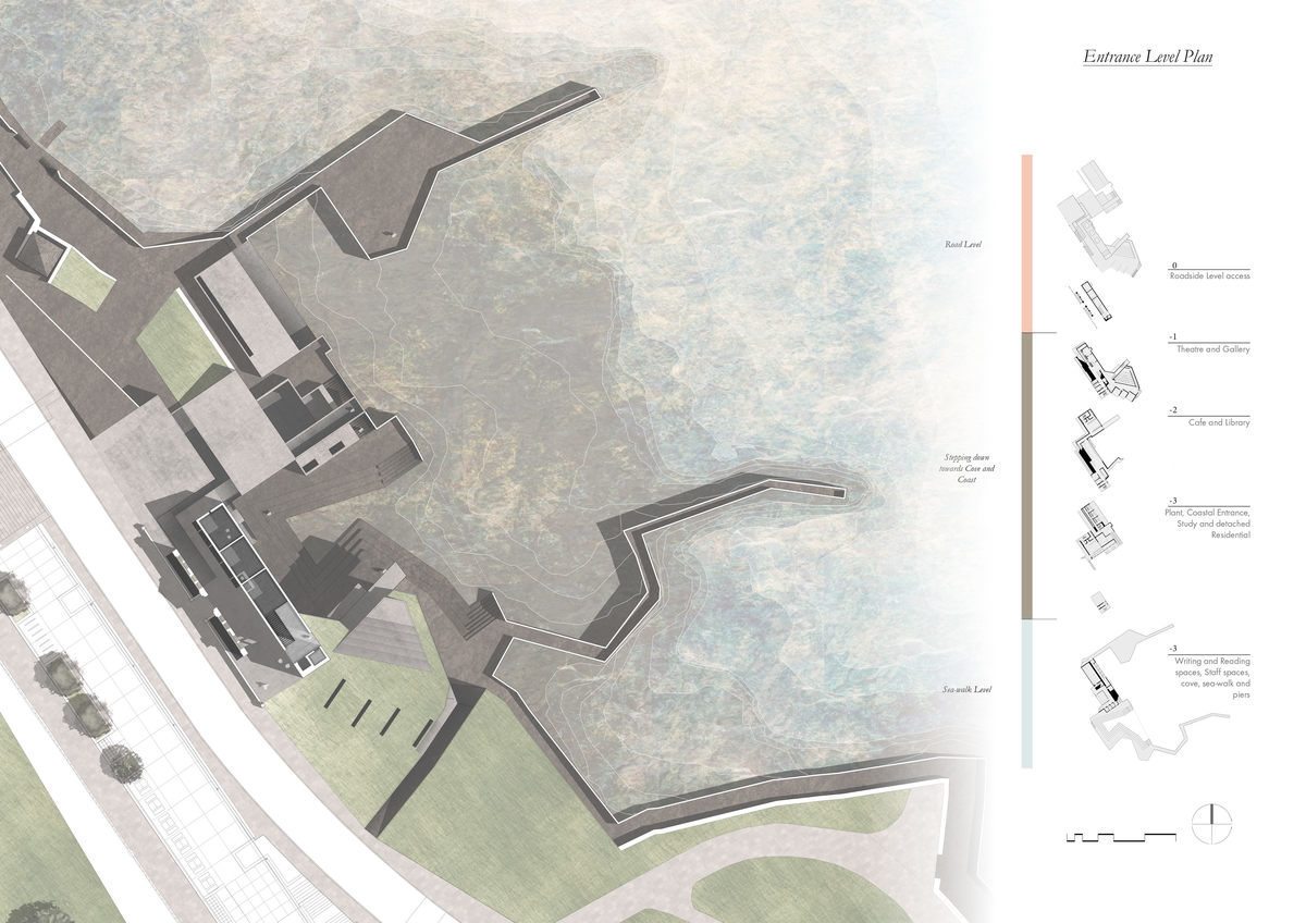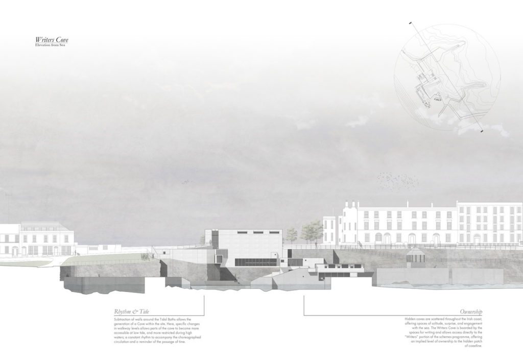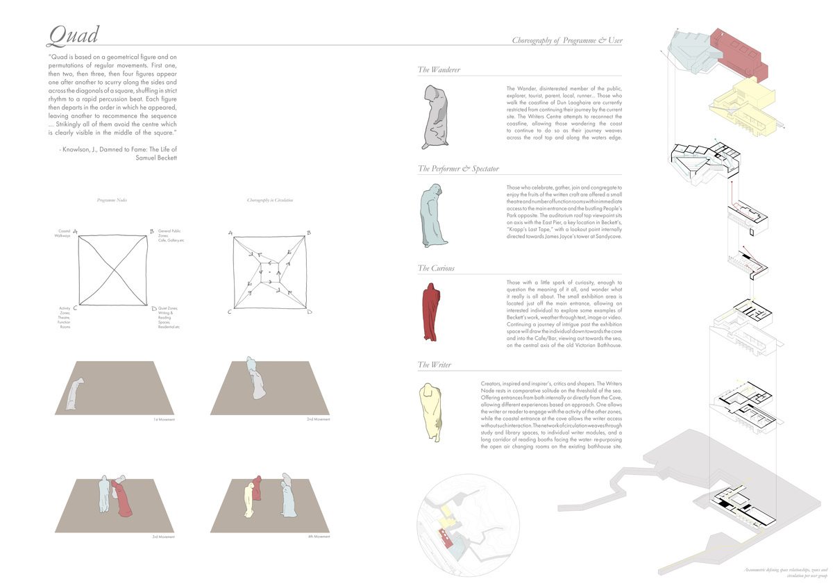 Holding degrees in both Psychology and Architecture, I have a keen interest in the human relationship with Architecture, and Architectures ability to weave connections between context, program and narrative. "The Writer's Cove; A Samuel Beckett Writer's Centre" re-frames the user as characters tracing the choreography of Beckett's "Quad" on the threshold between Town and Sea, Dún Laoghaire, Dublin