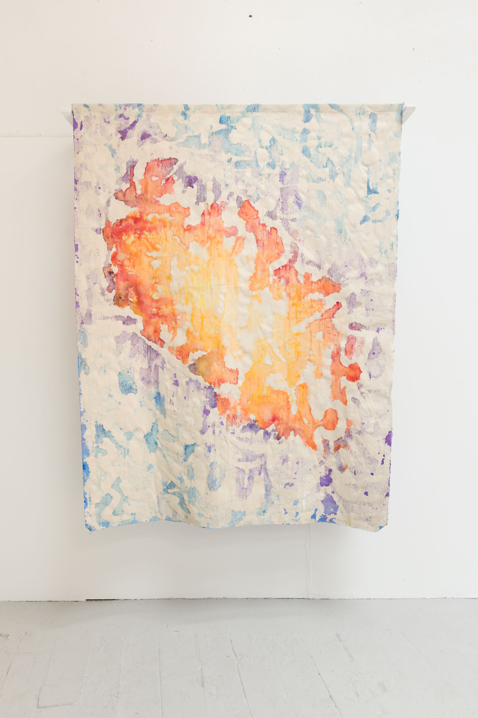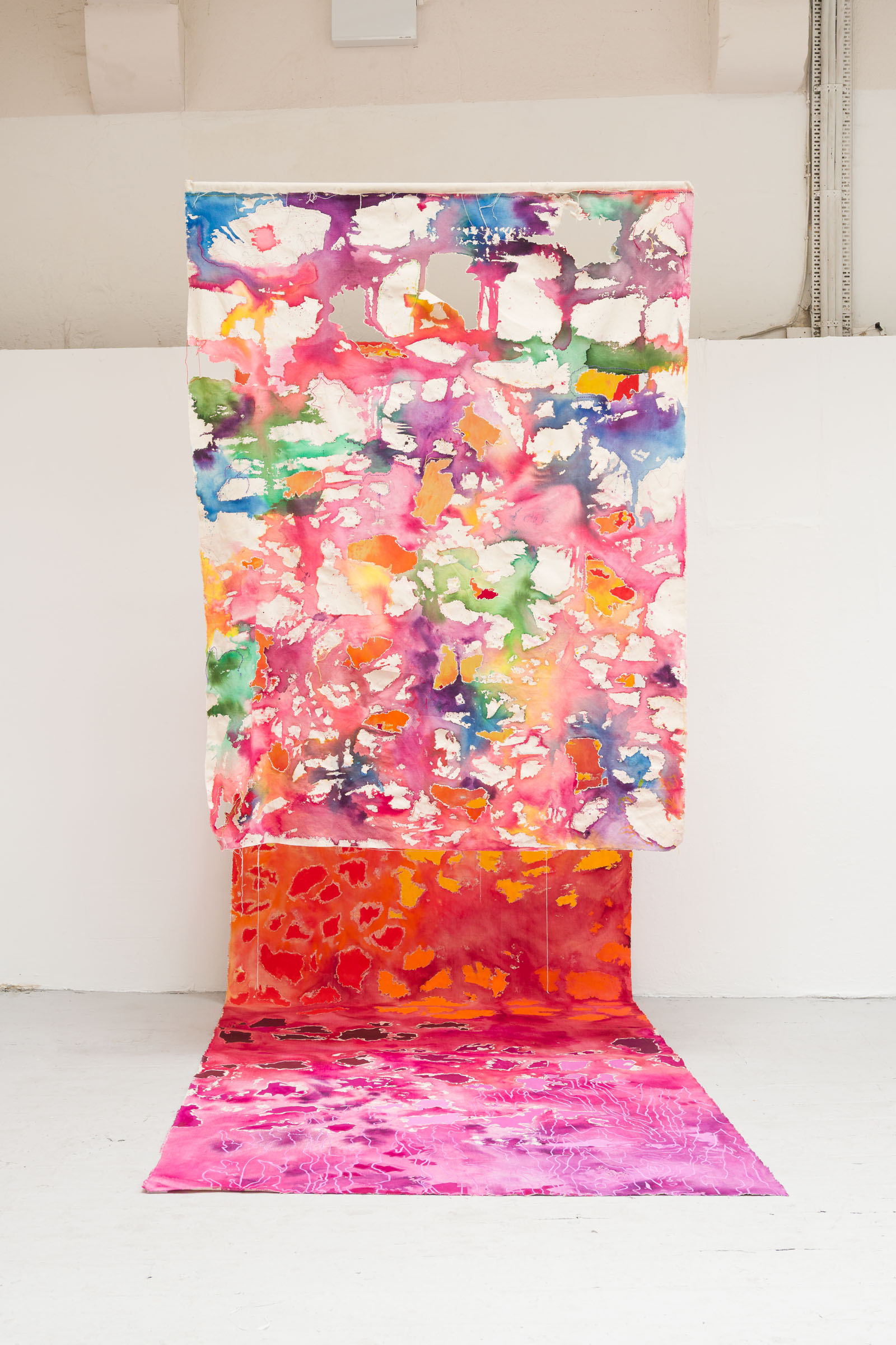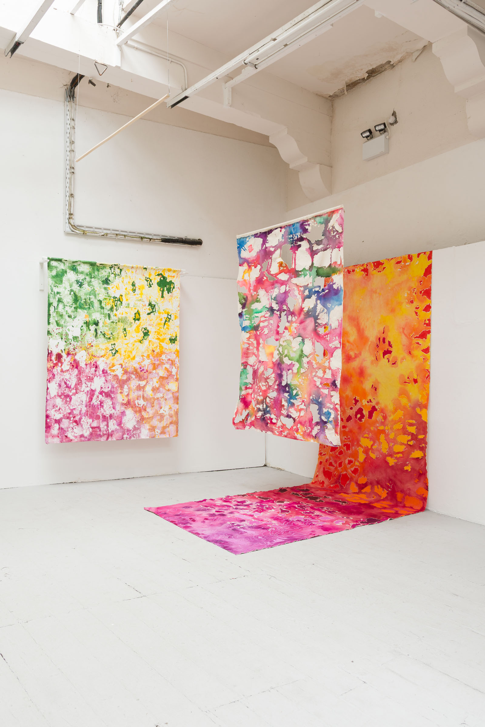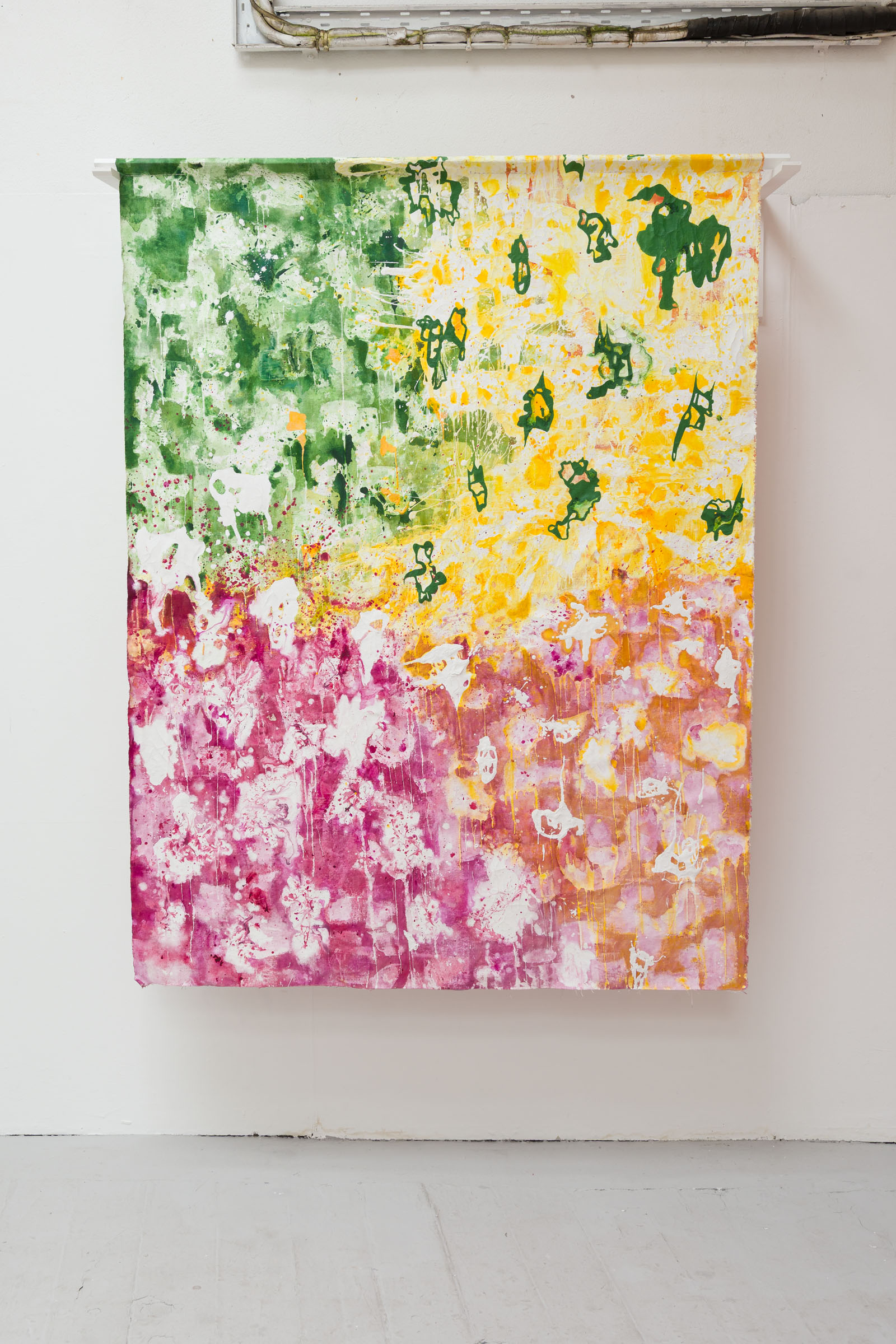 My art practice is rooted in abstraction in the physical realm and informed by my immediate surrounding environment of the Crawford College of Art and Design Sharman Crawford Street building. I focus on painting in an expanded way emphasizing that modern painting today is no longer confined to traditional boundaries. Painting's inescapable relationship to surface has inspired my current work. Fusing material observation with intuition, and association with a familiar environment, allows me to create abstract paintings that respond to the building’s surfaces, and in the colours and marks around me. By staining canvas with spillages and splats of paint, and analysing different surfaces deemed insignificant from my environment, allows for the creation of visual representations which contemplate various layers. Utilising both drawing and painting I can create artworks that embrace colour and incorporate tracings, staining fabric with thin veils of colour in a spontaneous manner, while layering with marks helps me navigate and create meditative works that reference time, place and human engagement with physical structures and surfaces.