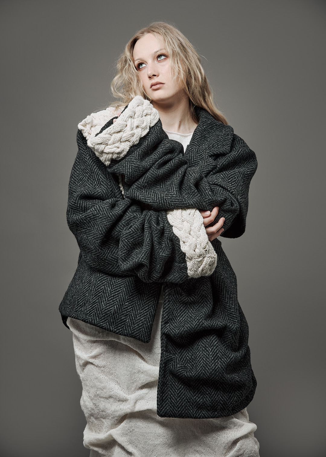 My name is Caoimhe Powell, I am a fashion design graduate who specialises in knitwear. My collection “What Came Before” focuses on forgotten traditions from bygone Ireland. I wanted to evoke a sense of nostalgia in people by bringing old Irish techniques to modern day fashion. I would love for people from everywhere to feel proud of their culture and identity. I included Irish knitting techniques and silhouettes inspired by traditional Irish tailoring to tell a story of Ireland's deep history and the wildness of Irish nature. All materials in my collection are natural fibres all locally sourced to support the Irish textile industry. The wool for this collection is in sponsorship with Donegal Yarns who I am deeply grateful for their guidance.
