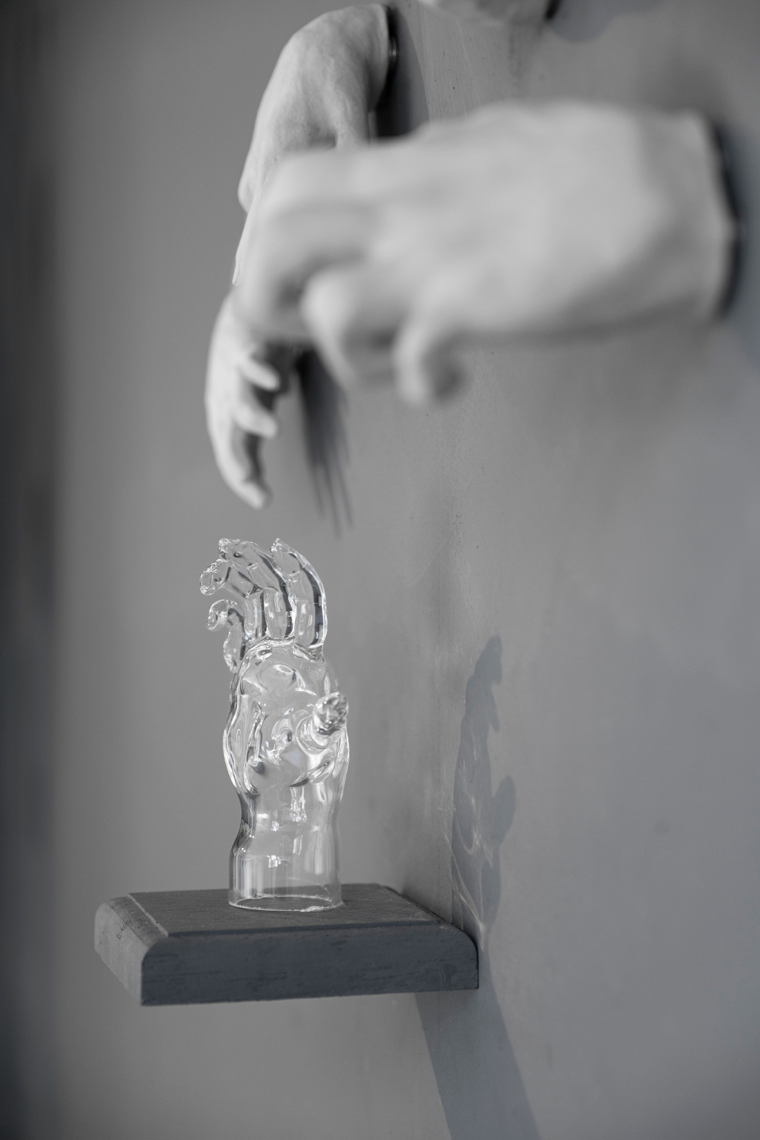 My name is Caoimhe Stopes. I am a 22 year old woman from Newbridge, Co. Kildare and I have just completed my final year at the National College of Art and Design, Dublin. I will be graduating with a Bachelors Degree in International Applied Materials, Glass and Ceramics. My primary practice lies within glass, where my main method of actualising my concepts is formed through lamp-working. Although glass is my preferred method of artistry, that does not limit me. I also thoroughly enjoy creating though ceramics, glazing and moving image. Much of my work focuses on matters that have an emotional impact on me, as well as societal issues and taboos. Having worked on a project about industrialisation and loss of wildlife, I have chosen to hone my degree show into far more personal issues. In my exhibition, I focus on my personal struggles with primary hyperhidrosis. This condition causes excessive sweating, and has been a huge challenge for me mentally, but considering the career I have chosen is also a physical obstacle too. My motivation is understanding societal constructs and aiming to change the way people feel about taboo subjects.