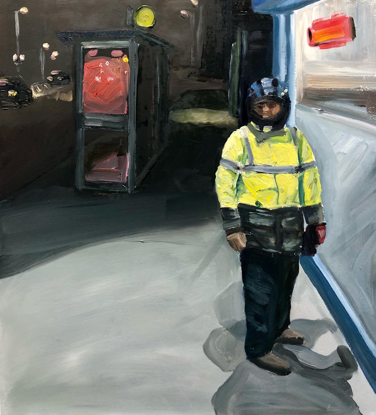 Surveillance runs through my work, using my phone as a tool to document the familiar and unfamiliar situations that occur throughout my daily routines. My work, that is then translated to paintings sets in stone events from friends and strangers. Spending time to make work on these unknown figures I can’t help but feel a connection towards them.