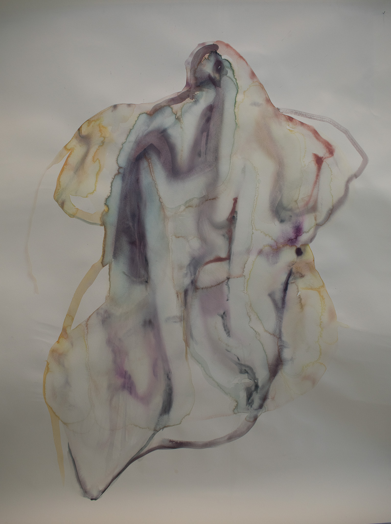 My practice centres on the relationship between the self and the body — the body as both a vessel for identity and a site of lived experience. My work investigates what it feels like to exist within a body, particularly the emotional and sensorial states that are difficult to articulate. Rather than depicting the body literally, I work abstractly to give form to sensation, memory, and internal consciousness. Some works explore physical and emotional states, where water and fluidity become metaphors for the body in flux. I work intuitively and autobiographically, drawing on personal experiences of embodiment. I use water-based media for its immediacy, its tendency to move, bleed, and respond, much like the body itself. Each piece becomes a kind of residue: a physical record of presence, process, and embodied experience.