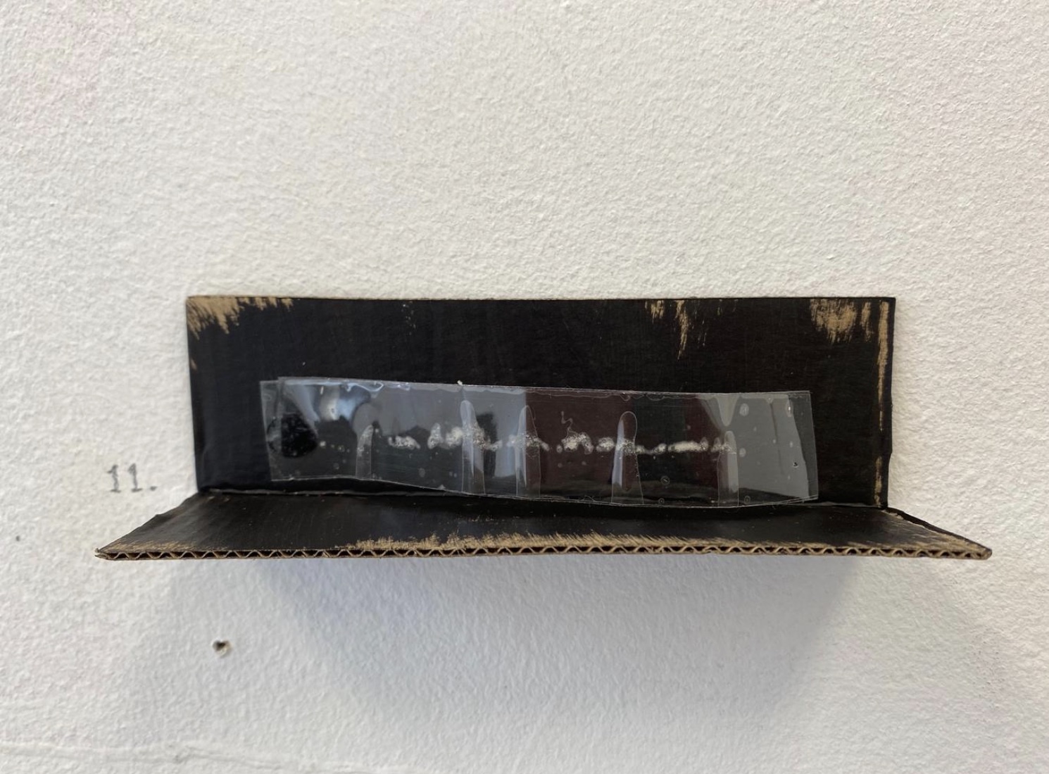 I’m interested in slow work that examines non precious, everyday material objects. I usemethods of disassembling to investigate these objects. Allowing them to take up space theytransform and reveal themselves in unfamiliar ways. Text is part of my practice formed inthe making, offering another dimension to the work that supports the space between theobjects.In October 2020 my mother died. Suddenly.Focusing on an old warmer she owned, this work attempts a conversation with thatsuddenness, the sense of presence that prevails and how tenuous connections make up ourown presence in this world. From its inception the objects’ materials have been chroniclinga connection with place, time and matter. Unpicking the garment shifts the materiality ofthings that escape into the world, this re-ordering in space and time presents perspectivesof the garment that were previously unseen.