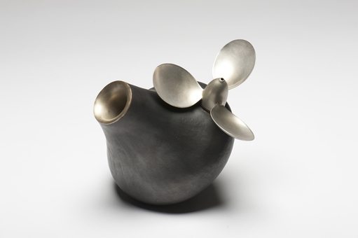 Silversmithing techniques are used to create these metal vessels from deconstructed found objects. Rethinking and reworking the parts into bulbous forms, whilst maintaining the dents and marks of their previous life reveals a charm, character and movement unique to each vessel.